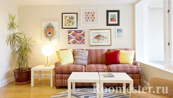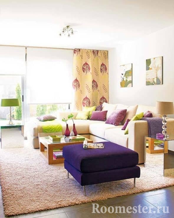 La ventaja del diseño en colores brillantes es su versatilidad, ya que pueden servir como telón de fondo para crear una futura sala de estar e ir bien con otros colores. Los diseñadores a menudo prefieren tonos de color claro debido al hecho de que: