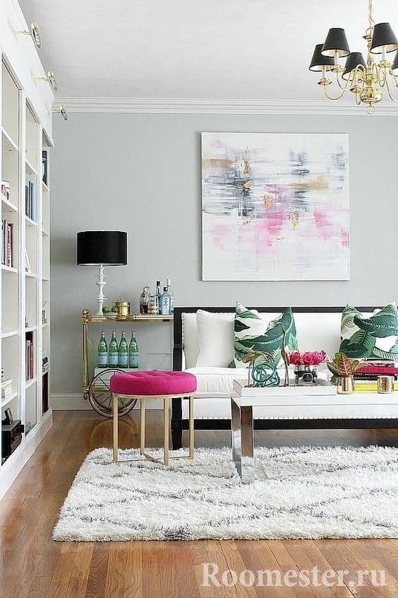 De los otros tonos claros en el diseño de la sala de estar, es más exitoso usar lo siguiente: