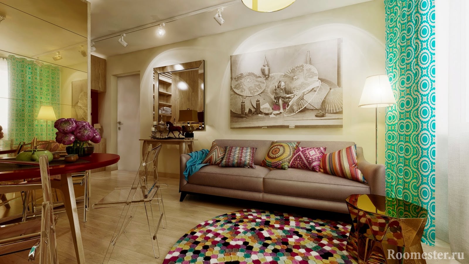 Será difícil implementar, además de los modernos, cualquier estilo en el que haya una decoración no funcional, decoraciones excesivas, cuando la habitación implique una estancia familiar y uso activo, y no solo la recepción de invitados.