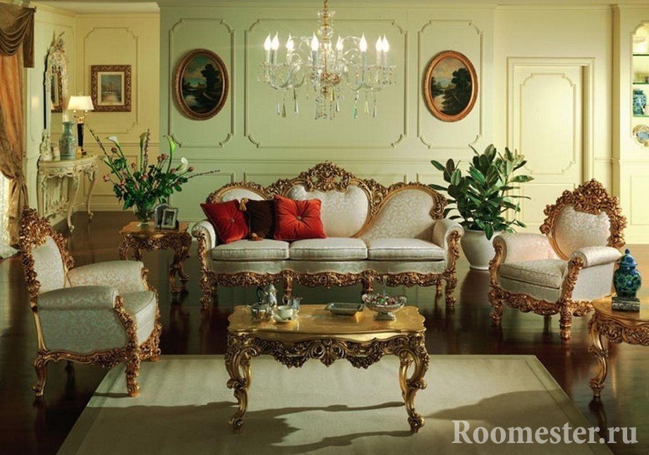 El barroco se posiciona como un estilo de líneas claras, simetría, pero no sin la notoria decoración rica. Muebles de caoba, acentos con tonos de flores profundos son de poco interés para cualquiera ahora. Art Nouveau, o Art Nouveau, como se llamaba en varios países europeos a principios del siglo XIX, puede ser más adecuado para la vida cotidiana.