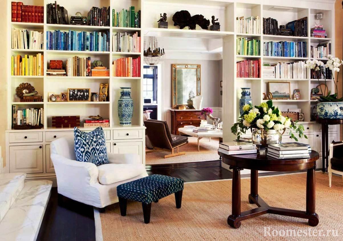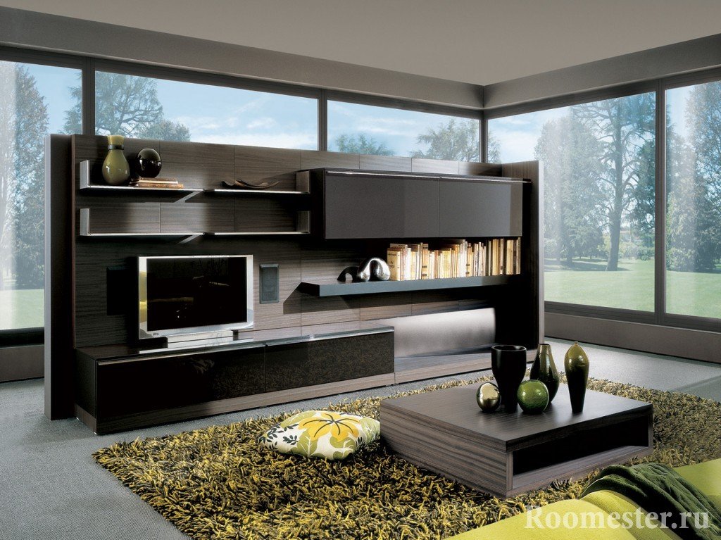 Las estanterías de tipo abierto, con puertas de vidrio, no "sobrecargarán" la sala de estar, la harán visualmente libre, aireada.