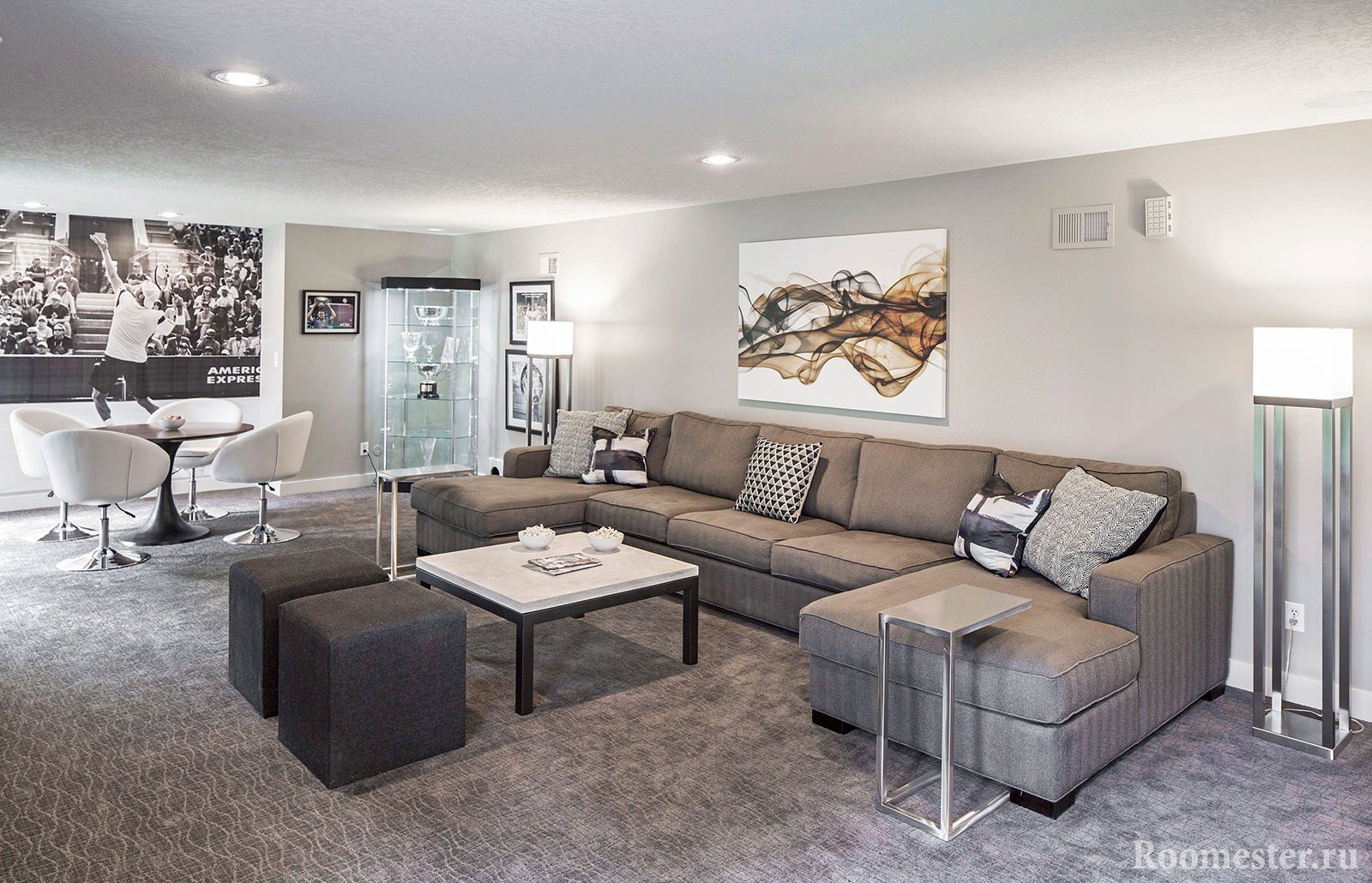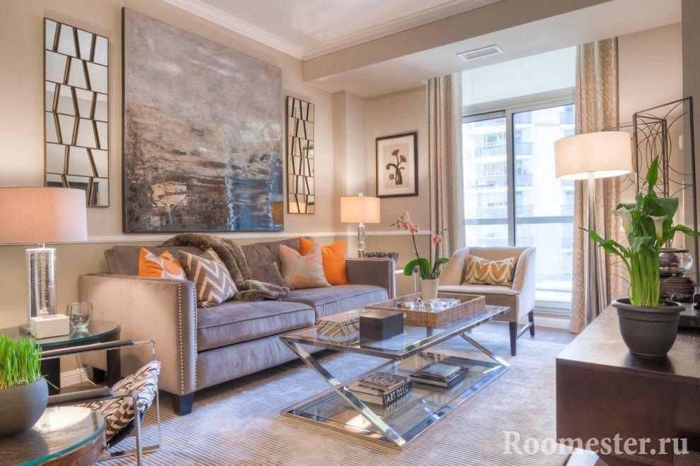 Pero es importante no solo comprar estos artículos, sino organizarlos correctamente. ¿Determinar por qué estás equipando el pasillo? Para reuniones familiares tranquilas frente al televisor por las tardes, o para fiestas ruidosas, haga muchos amigos. ¿O tal vez la sala de estar debería realizar por la noche la función de dormir para los propietarios o, a menudo, para visitar a familiares?
