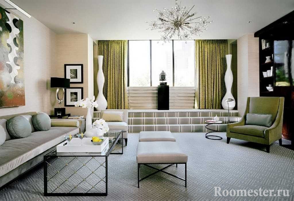 Este género rechaza la claridad de las líneas, gravita en elementos vegetales que fluyen. Los arquitectos y diseñadores extraen sus ideas de la naturaleza, por lo que los interiores modernos abundan en adornos florales, patrones y líneas fluidas. Con un área de salón de 30 metros cuadrados, puede calificar para el art nouveau, usando tonos tranquilos en la decoración y un mínimo de contrastes. Los recuerdos retro y agradables del pasado, con increíbles combinaciones de colores, artículos de decoración, serán interesantes para los coleccionistas y amantes de la antigüedad.