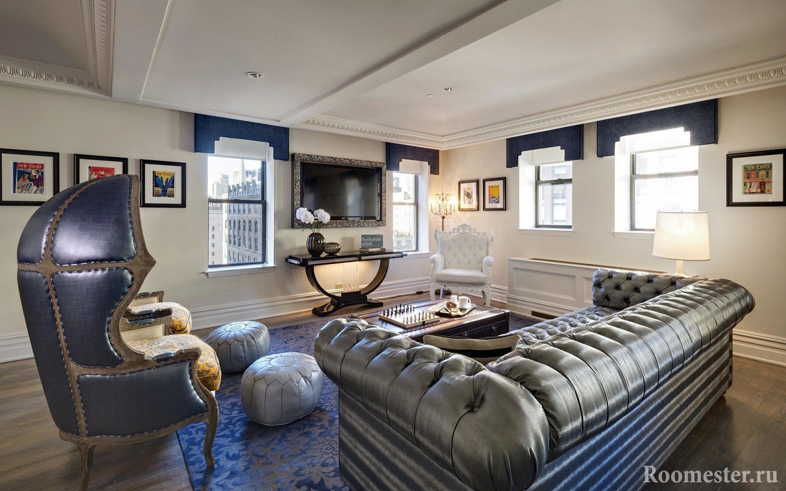 Dependiendo del área de la sala, es posible recurrir a cualquier estilo, el beneficio de eso es más que suficiente. Hay pocas personas que pueden vivir dentro de un "museo" de veinte metros, por lo que filtraremos algunas direcciones pomposas y artísticas como el barroco, el imperio, dirigiendo nuestros ojos a otros géneros de arte increíbles.