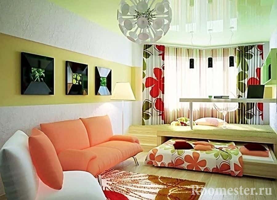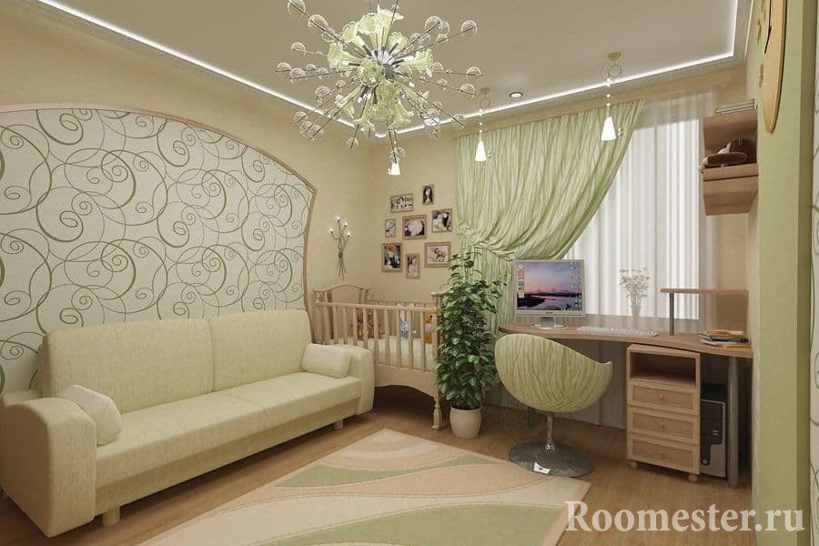 Diseño de una sala de estar y una guardería en una habitación: ejemplos del interior
