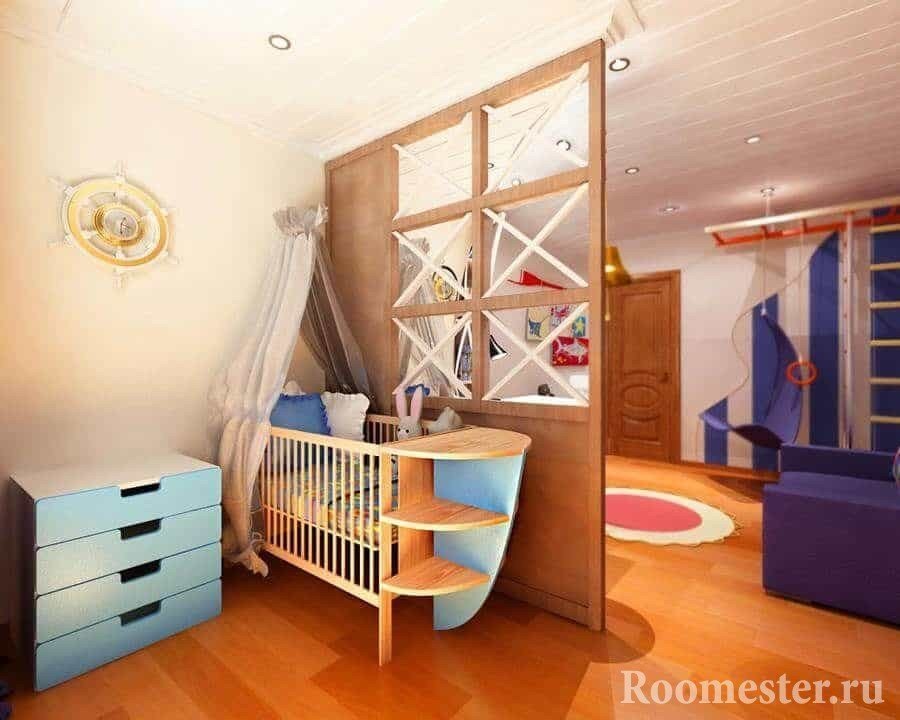 Antes de proceder a la zonificación de una habitación en una sala de estar y una guardería, es necesario considerar expandirla para incluir habitaciones contiguas: un balcón, despensa, etc. El uso de "reservas ocultas" puede tener un efecto al crear zonas para niños y adultos en una habitación. Al determinar qué parte se asignará a la guardería, es mejor darle espacio a la ventana para el niño. Después de todo, el cuerpo joven emergente requiere buena iluminación, aire limpio. Cerca de la ventana puede colocar una cuna o área de trabajo. Para crear zonas completas para el gasto paralelo de tiempo por parte de adultos y niños, existen dos enfoques diferentes para la planificación: