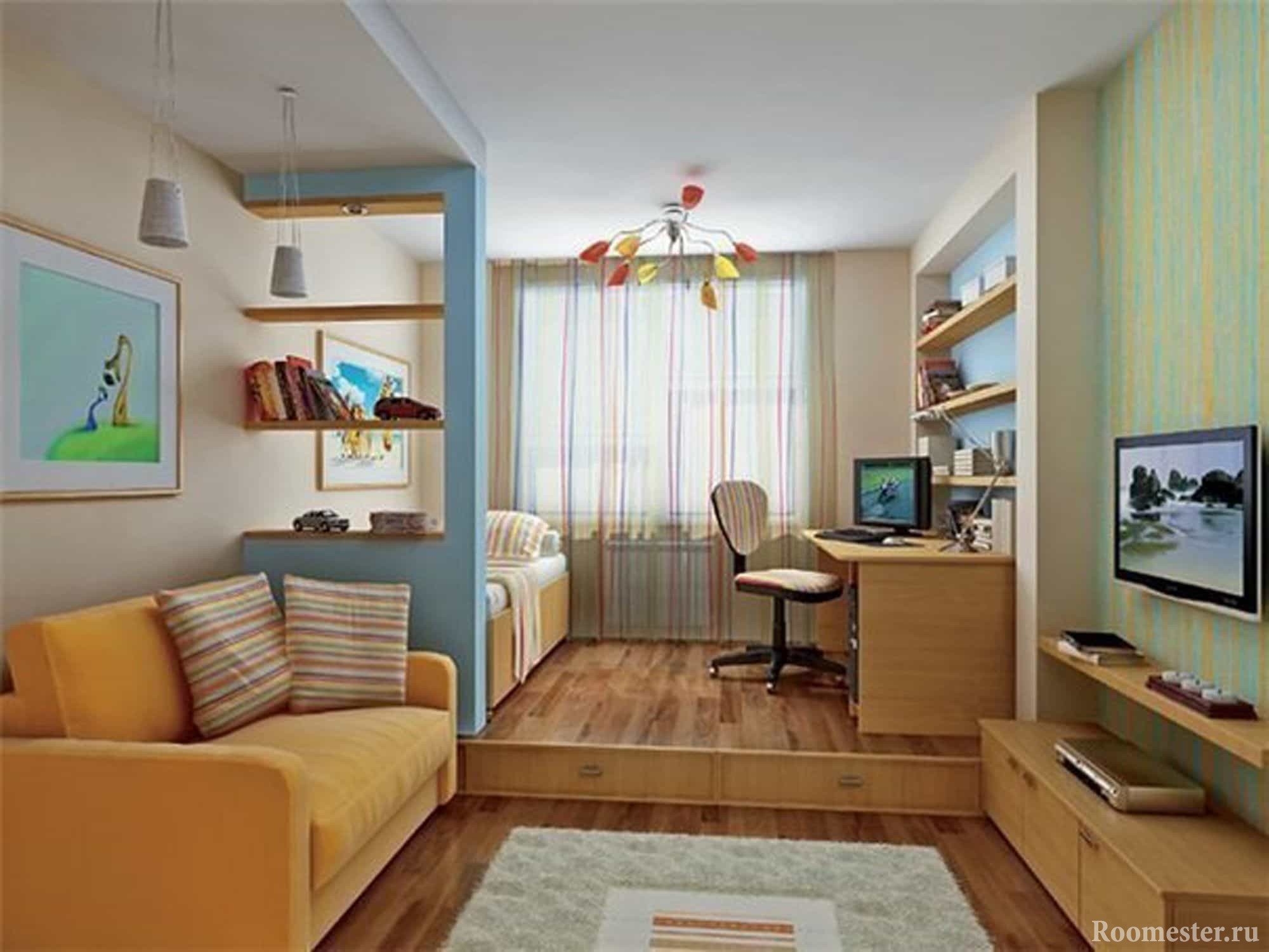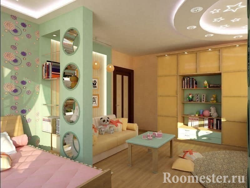 Por lo tanto, hay muchas ideas sobre cómo equipar dos zonas diferentes en una habitación combinada, como una sala de estar y una guardería con un área para dormir, trabajar y jugar. Y las posibilidades están limitadas por la imaginación del diseñador y las capacidades financieras de los clientes. Y los resultados complacerán tanto a niños como a adultos.