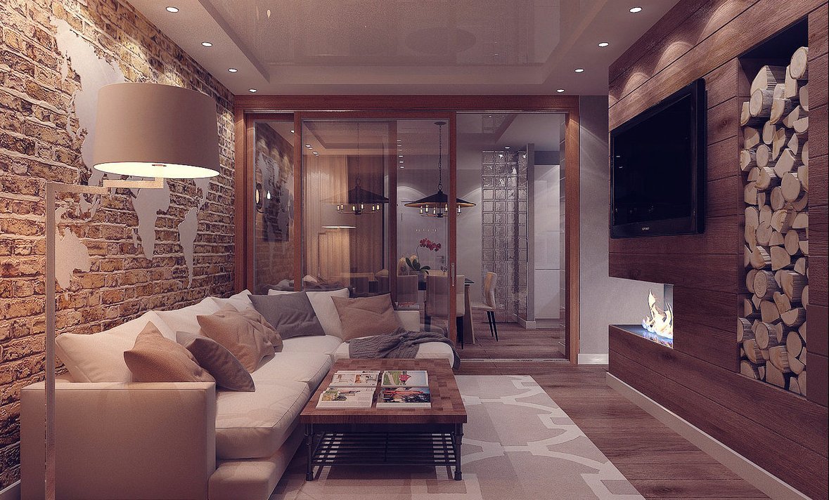 El interior marrón es particularmente cálido y confortable. Este color está asociado con el chocolate suave y el café aromático para muchos. El loft de la sala se verá elegante si piensa en la combinación de colores. Marrón: el color de la madera, un material indispensable en la decoración de los locales. Los muebles de cuero y los elementos de decoración enfatizan el estado del propietario, lo caracterizarán como una persona que valora la calidad y la durabilidad.