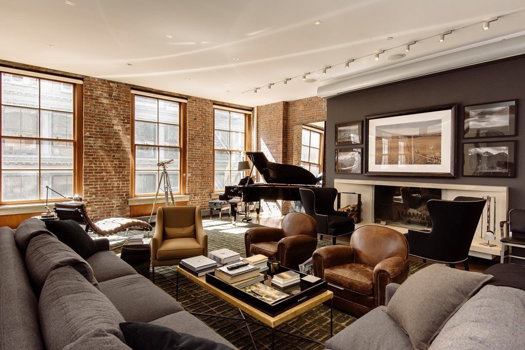 Un lugar de honor en el medio de la sala siempre está ocupado por un gran sofá. Puede ser un "yugo" gigante de cuero en mal estado o un "yugo" textil con una masa de almohadas multicolores. Debe estar solo, para no privar al centro semántico de la sala de la individualidad. Una abundancia de asientos es característica de un loft. Pueden ser sillas de metal, estructuras de madera, otomanas suaves y otros artículos originales.Atributos indispensables: lámparas de pie, muchas mesas de café, tecnología moderna.