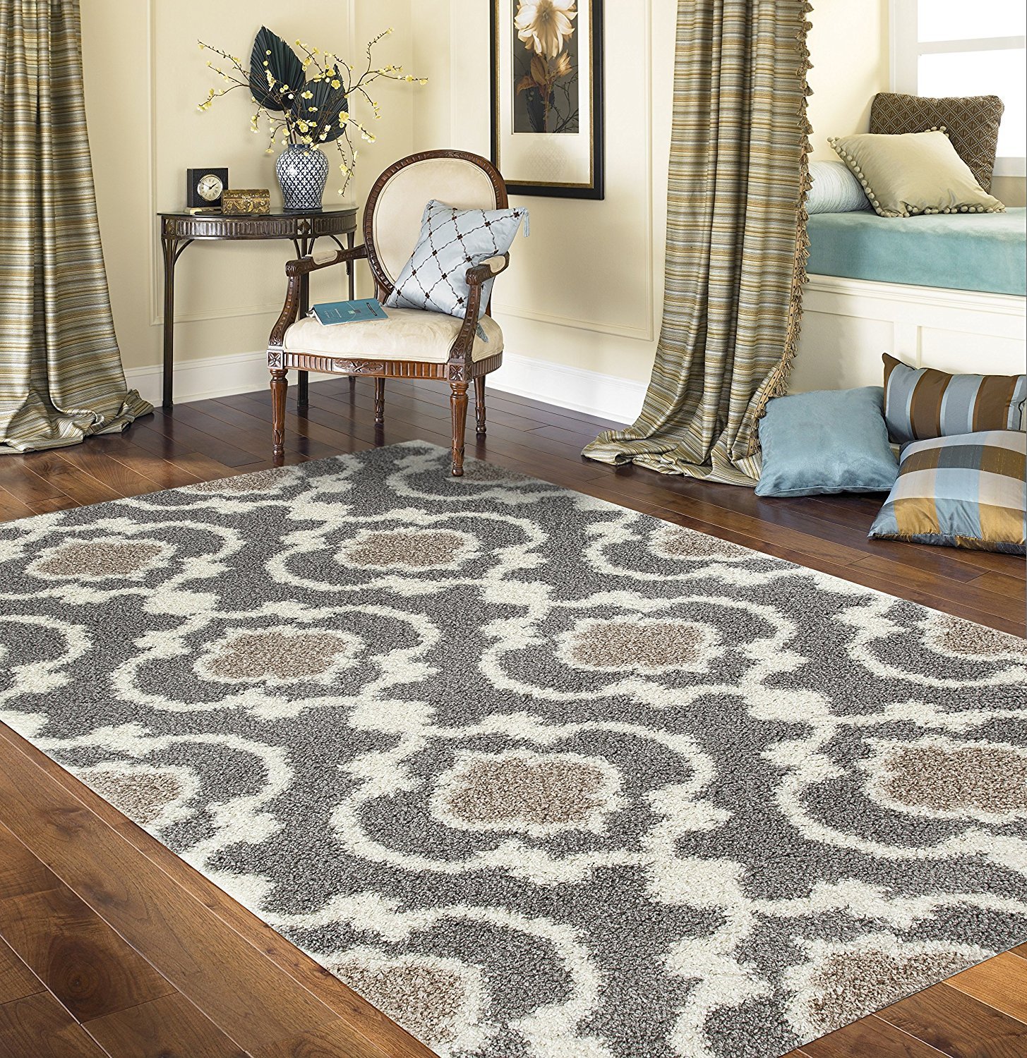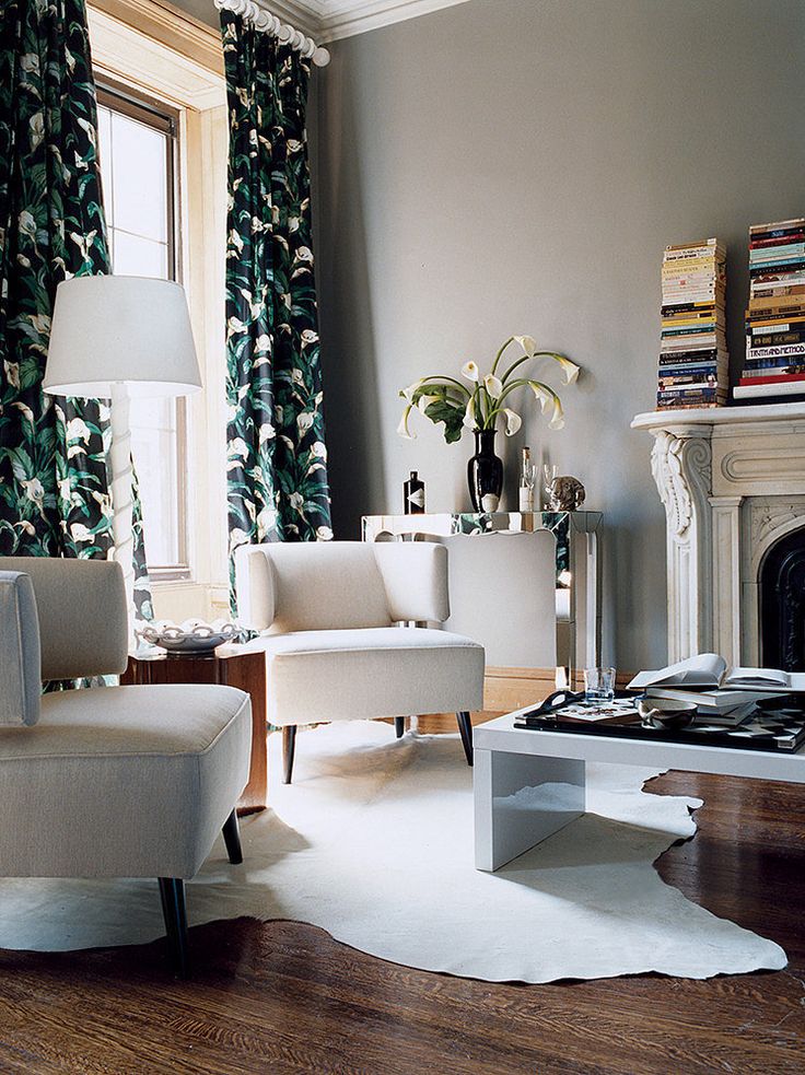 Es preferible que la alfombra sea grande, casi toda la habitación, lisa, oscura, con un montón largo.Combina con éxito elementos individuales de muebles a su alrededor, sin llegar a las paredes de 15-20 centímetros. Una alfombra redonda es adecuada para una sala de estar cuadrada; dos o tres alfombras se colocan en la habitación con la configuración "incorrecta", con la ayuda de la cual se divide en zonas el espacio.