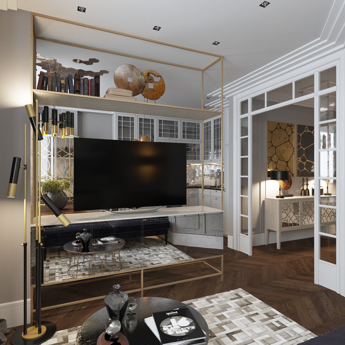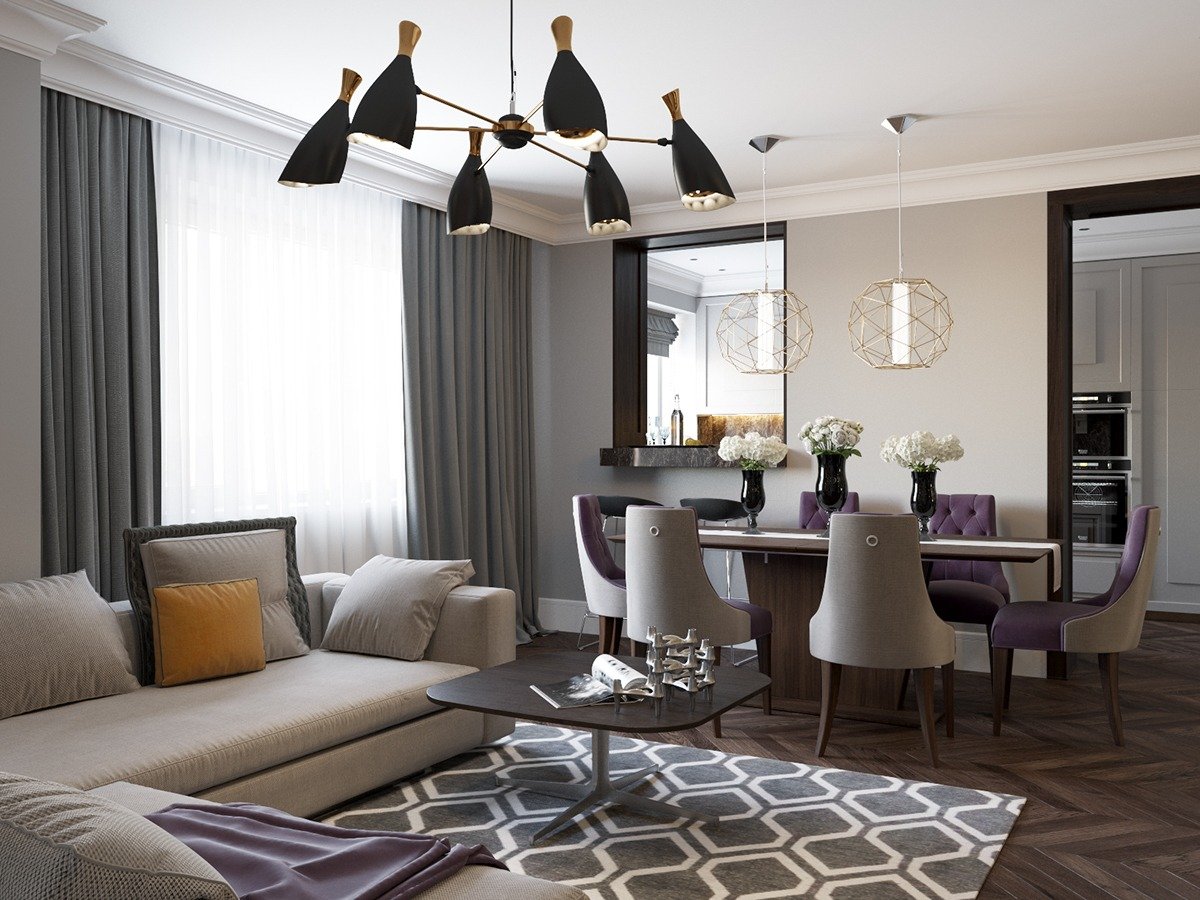 Un apartamento tipo estudio, una sala de estar combinada con una cocina también a menudo está decorada en este estilo.