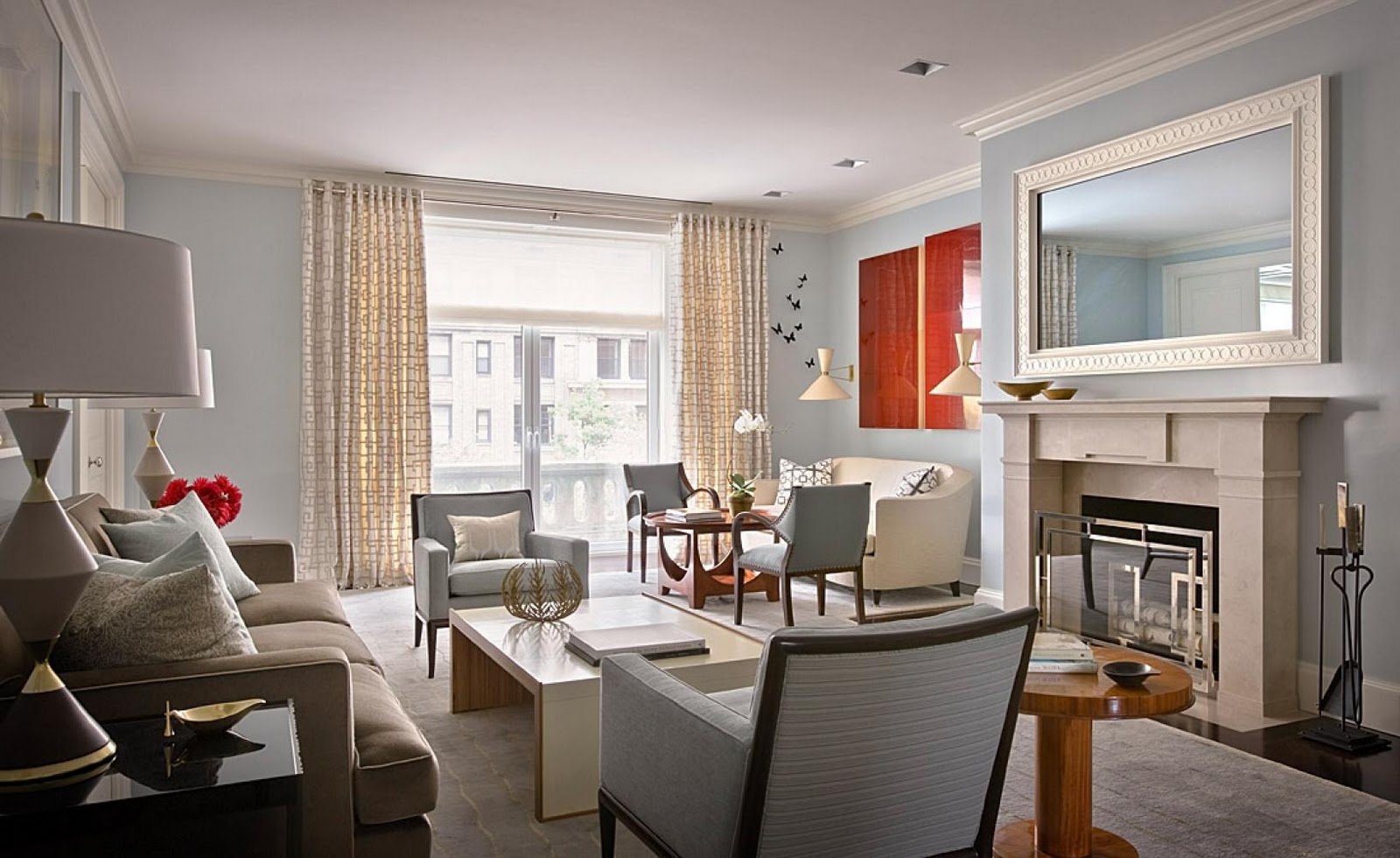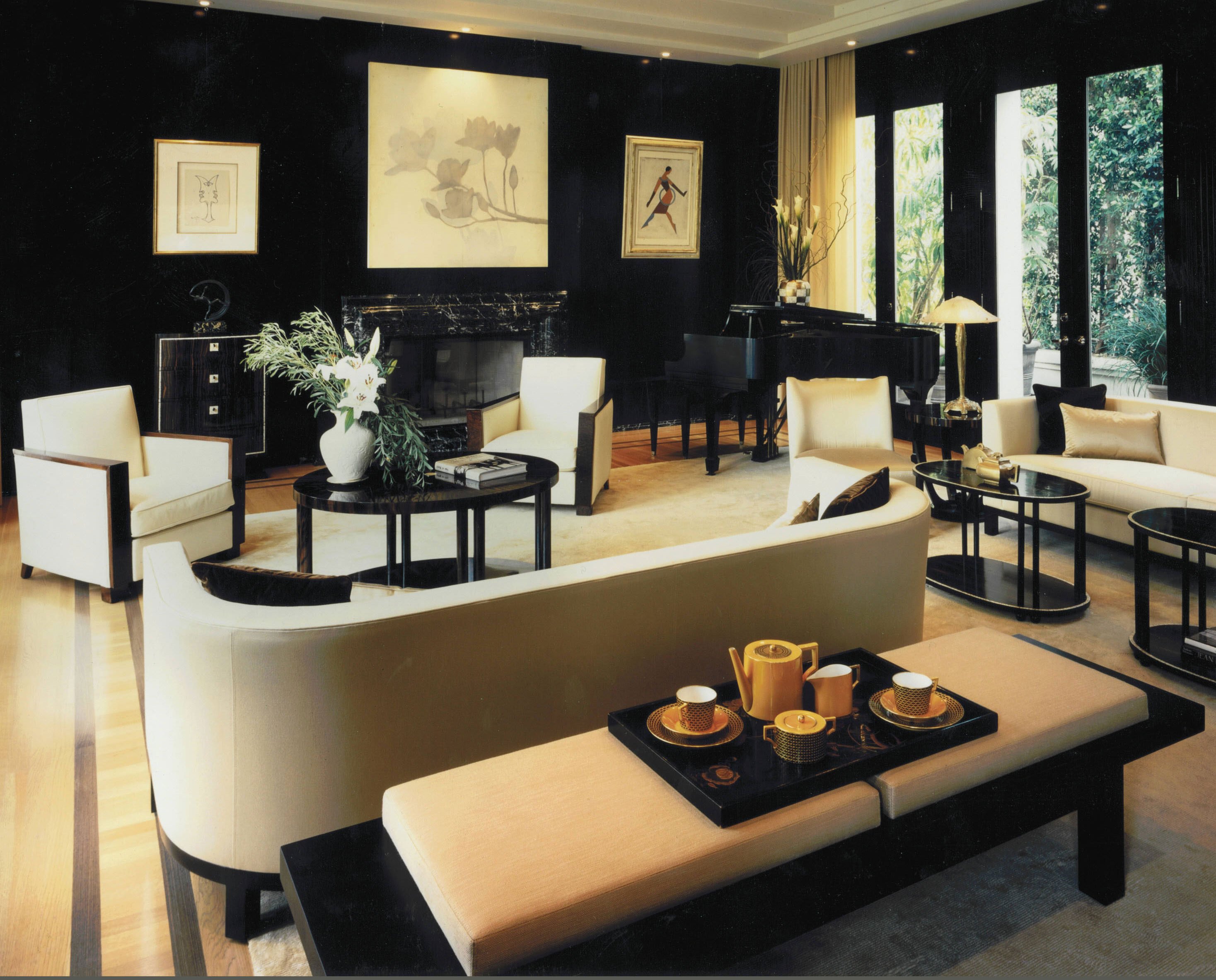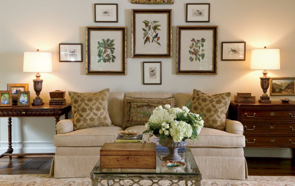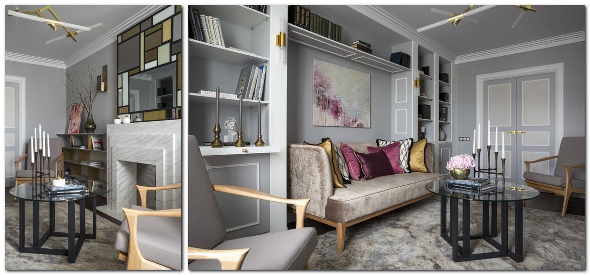 Las esculturas, así como las reproducciones de pinturas famosas de artistas modernistas: Gustav Klimt, Alphonse Mucha, Eugene Grasse, Paul Philippe, Mikhail Vrubel, Edward Munch, etc., son adecuadas para la sala de estar.