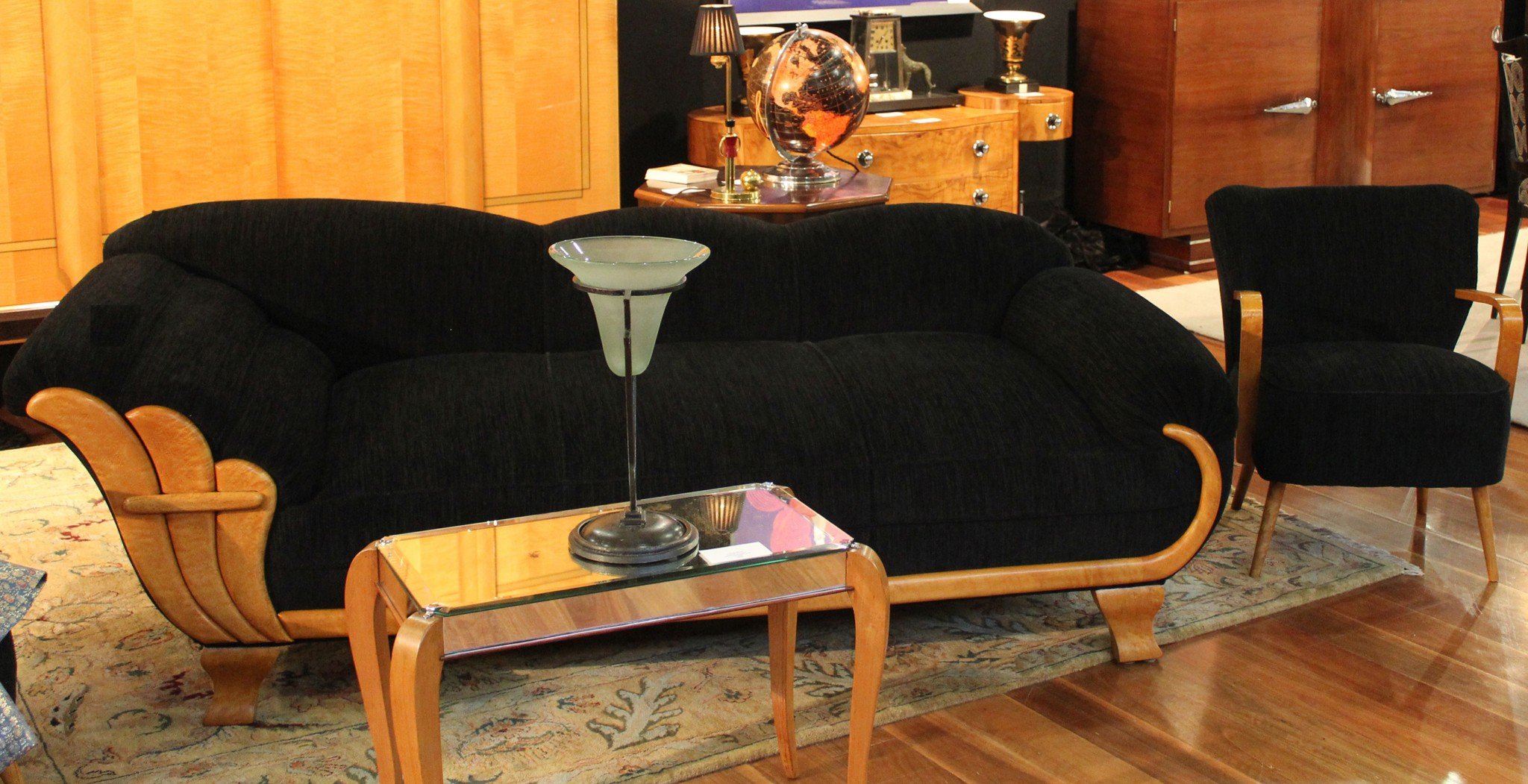 La mayoría de los muebles no se colocan a lo largo de las paredes, sino "en ángulo". Los muebles se seleccionan antiguos, artificialmente envejecidos, formas extrañas. A menudo hay un sofá asimétrico, una estantería para libros o un armario de pared decorado con vidrieras multicolores, una mesa de centro de vidrio con patas de hierro forjado. El principal material de producción es madera valiosa.