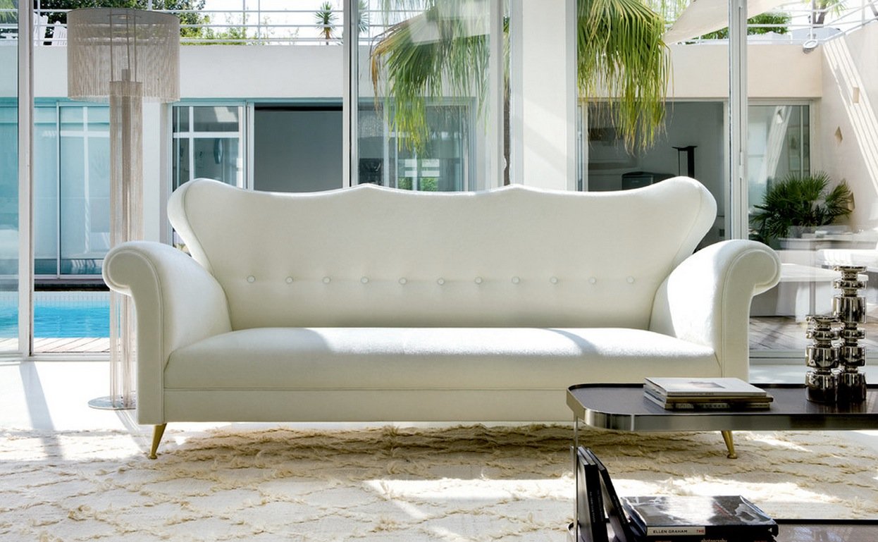 El sofá se compra con mayor frecuencia plegable, con una cubierta extraíble, que es fácil de lavar en la máquina. Como opción, un elegante sofá de esquina con patas talladas, reposabrazos curvos.