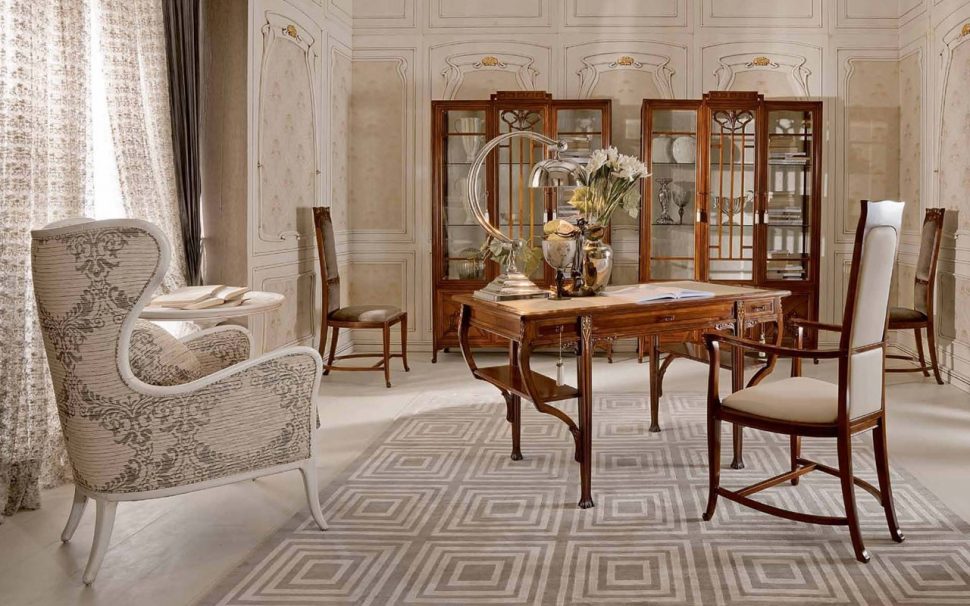 El Art Nouveau es considerado por muchos como el más moderno de los estilos, aunque surgió a fines del siglo XIX. Elementos separados de esa época aún se adivinan en los interiores modernos, involucrando a una persona, todas sus esferas de actividad en el mundo de la belleza. Prácticamente no hay líneas rectas, formas simples, y las premisas son tan estéticas y funcionales como sea posible. El interior único de la sala de estar en estilo Art Nouveau es adecuado para la decoración de un apartamento de la ciudad y una casa privada.