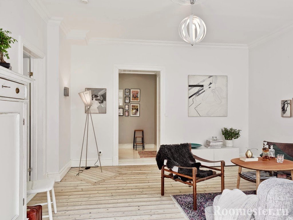 En comparación con el anterior, el diseño de la sala de estar de estilo escandinavo se manifiesta en formas más simples y modestas, así como en colores nórdicos fríos. Los materiales naturales tradicionales, piedra o madera, se combinan armoniosamente con vidrio o metal cromado. El espacio es más libre.