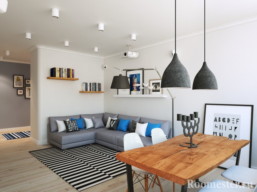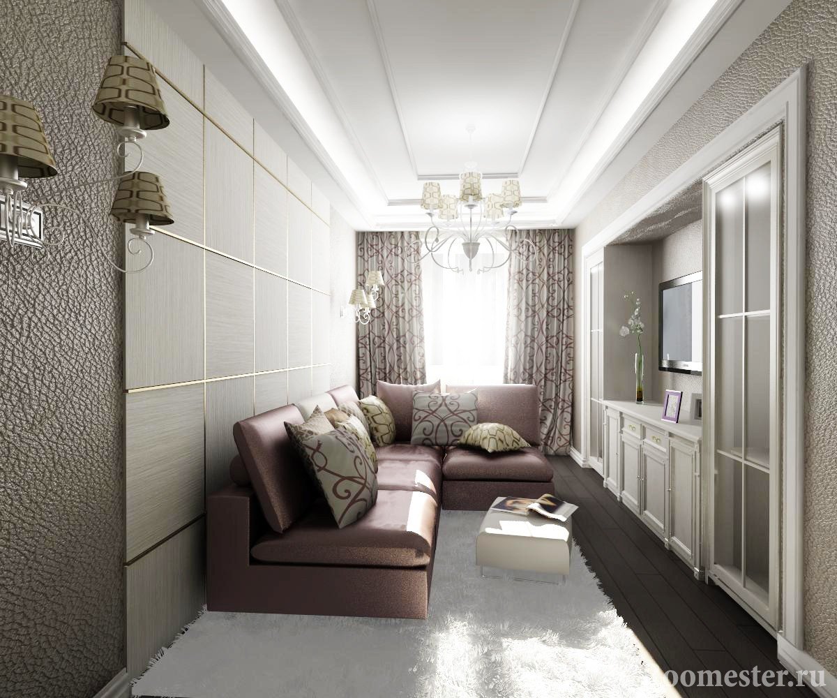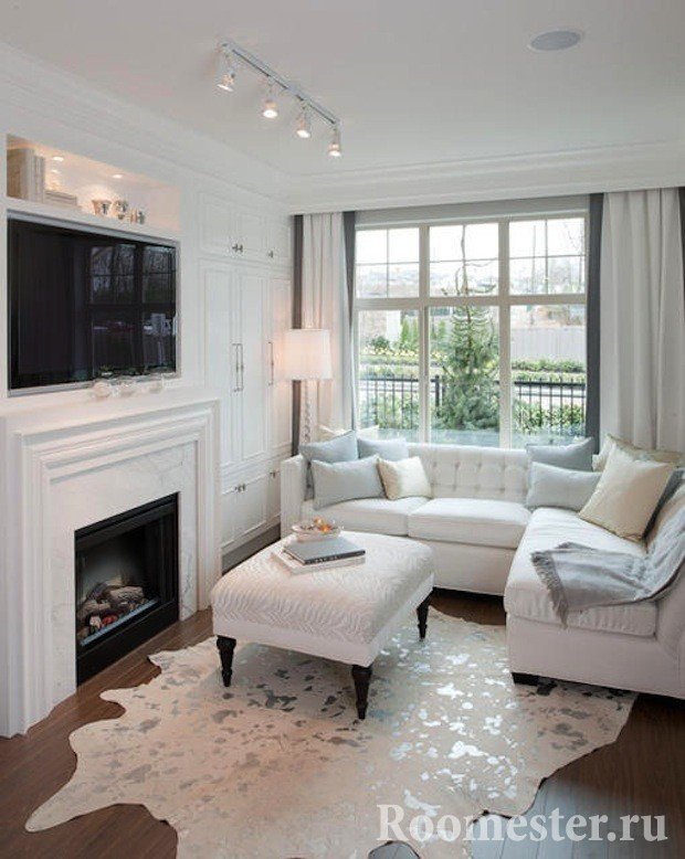 Al elegir la iluminación, no solo se tiene en cuenta el área total de la sala de estar, sino también su forma;