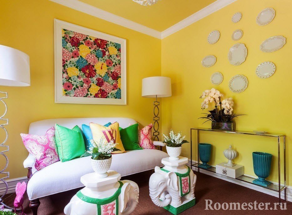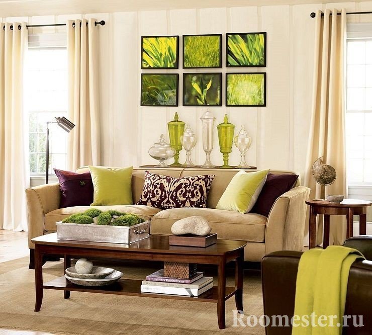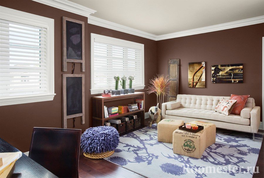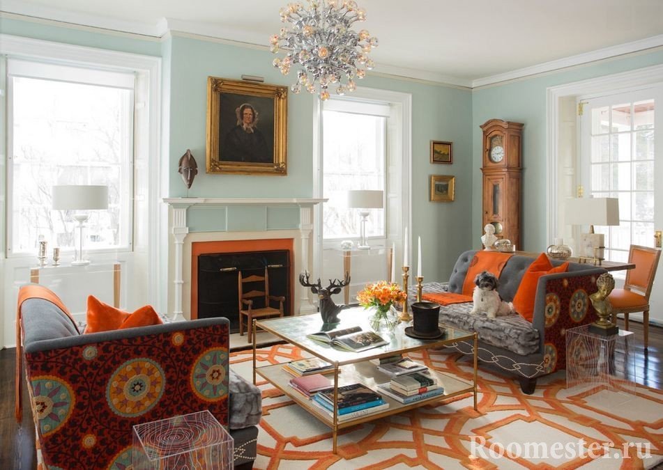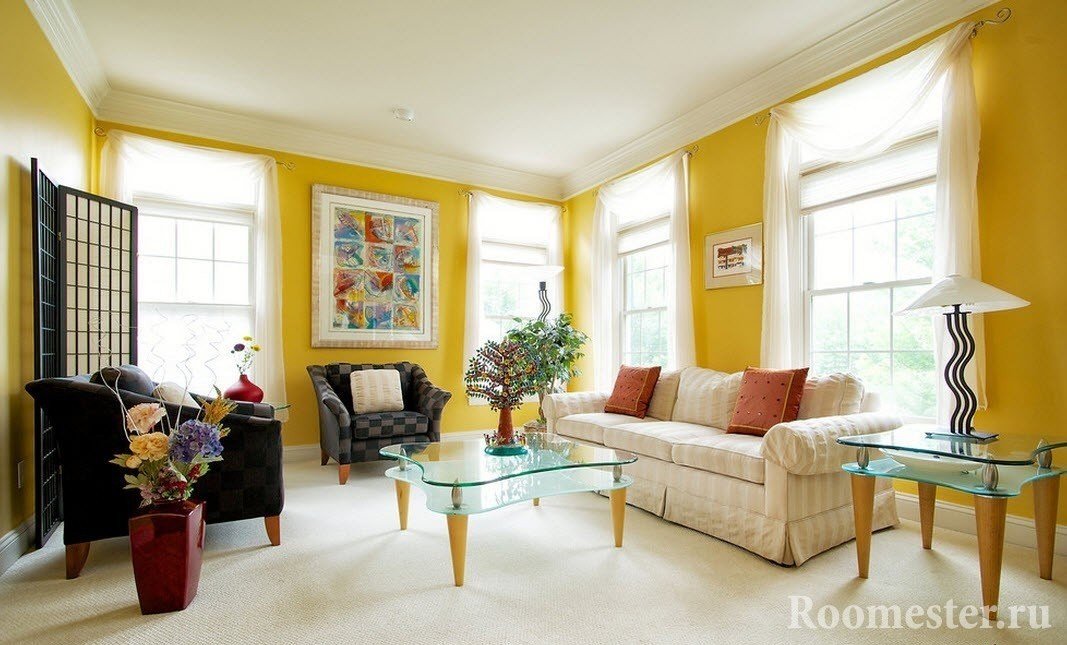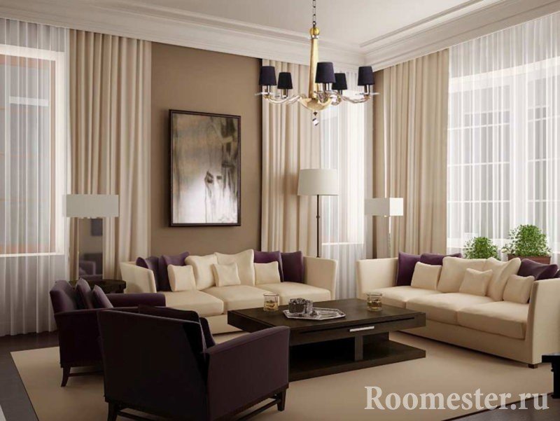 la combinación de colores en el diseño de la sala de estar se selecciona en función de la dirección en que "miran" sus ventanas;