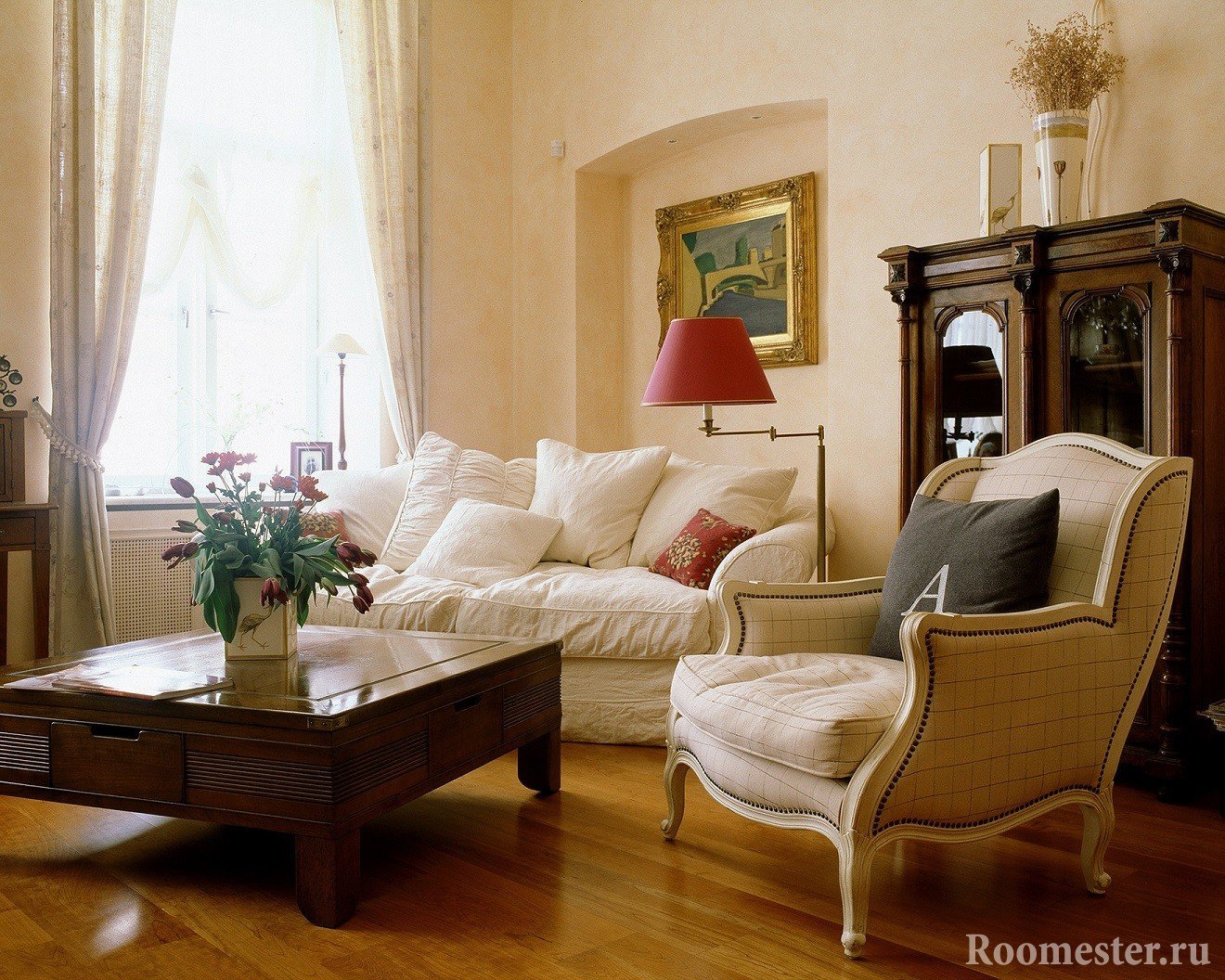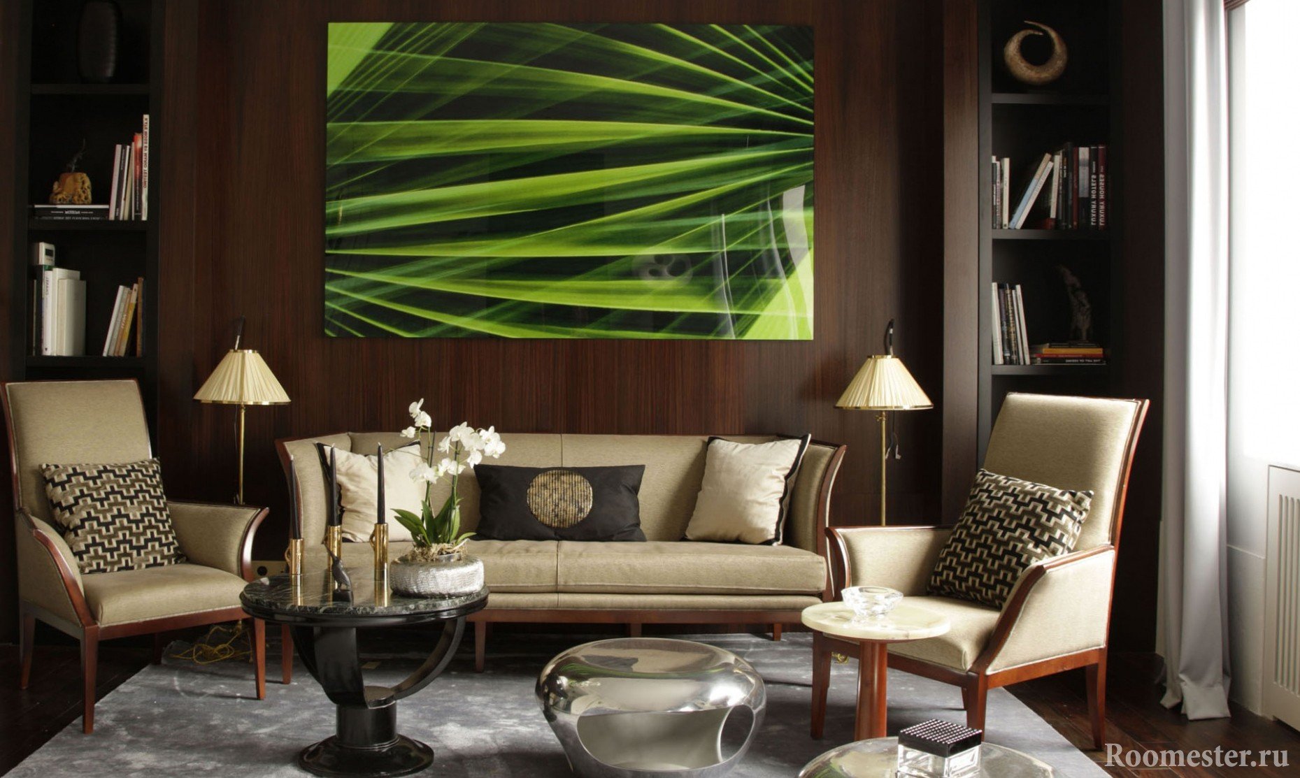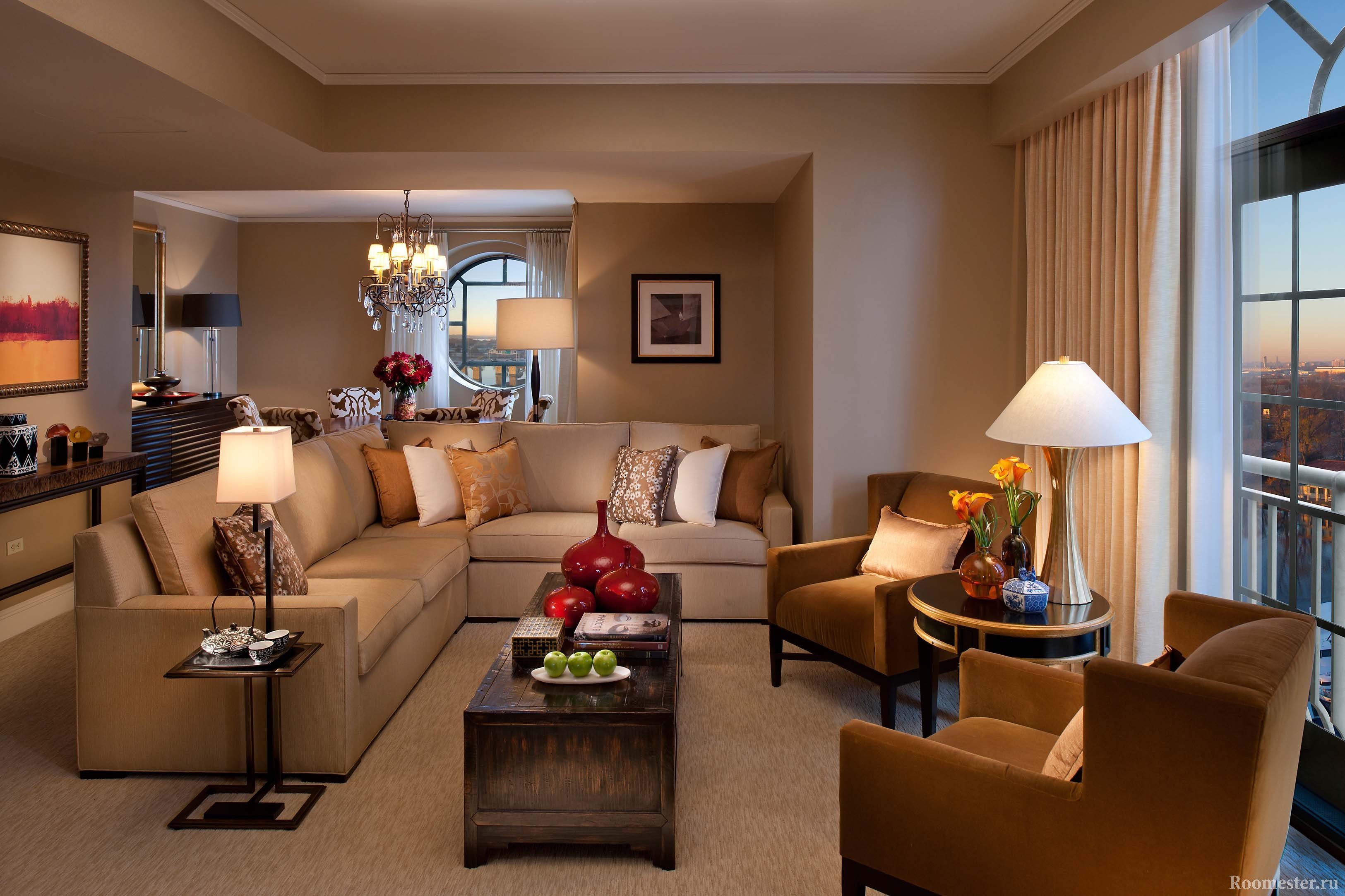la combinación de colores en el diseño de la sala de estar se selecciona en función de la dirección en que "miran" sus ventanas;
