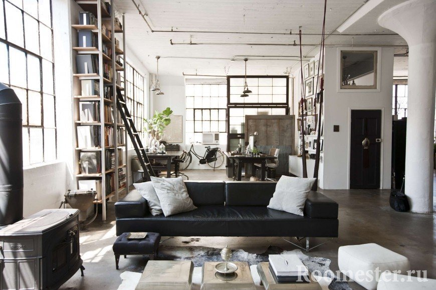 El estilo "ático", que implica la conversión de locales industriales en residenciales. Loft-interior es, en primer lugar, paredes de ladrillo u hormigón, así como amplias habitaciones. Este metal, vidrio y texturas de madera envejecida como acabado, así como un número mínimo de piezas.