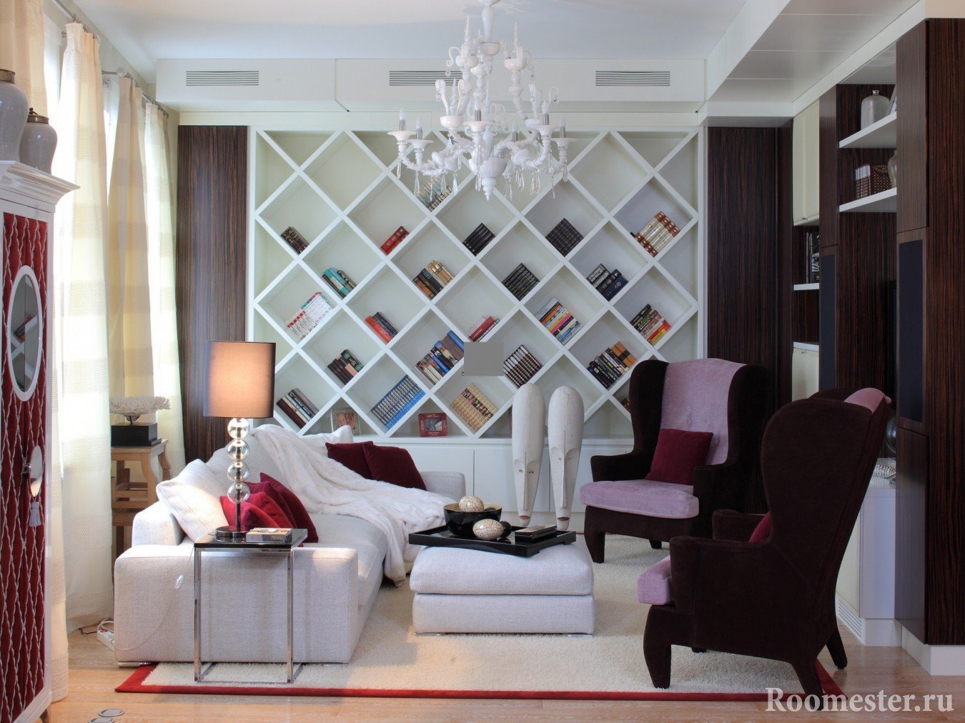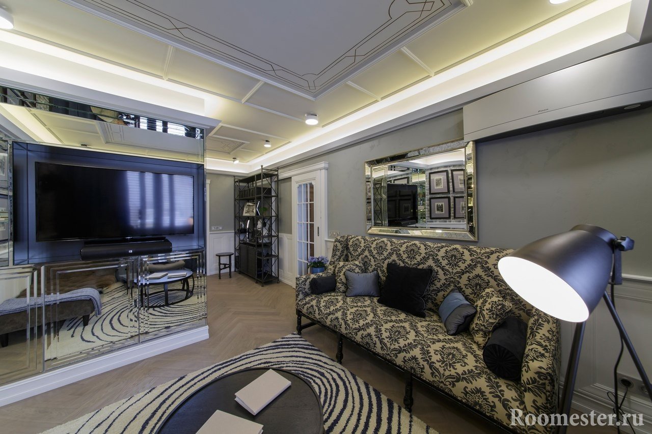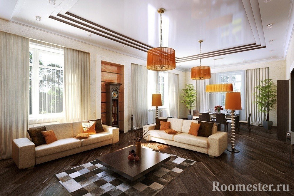 Es extremadamente indeseable incorporar más de tres zonas en la sala de estar. Esto está lleno de una gran cantidad de muebles y elementos decorativos.