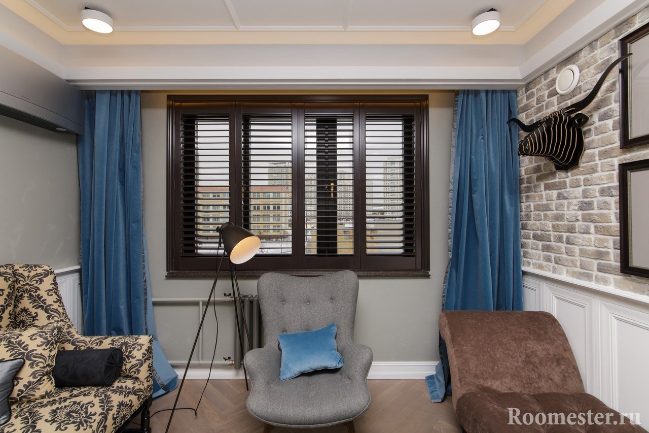 Con una oficina. Le dedican un área pequeña, porque la mesa y la silla de trabajo no ocupan mucho espacio. Pero es muy importante que aquí esté la ventana.