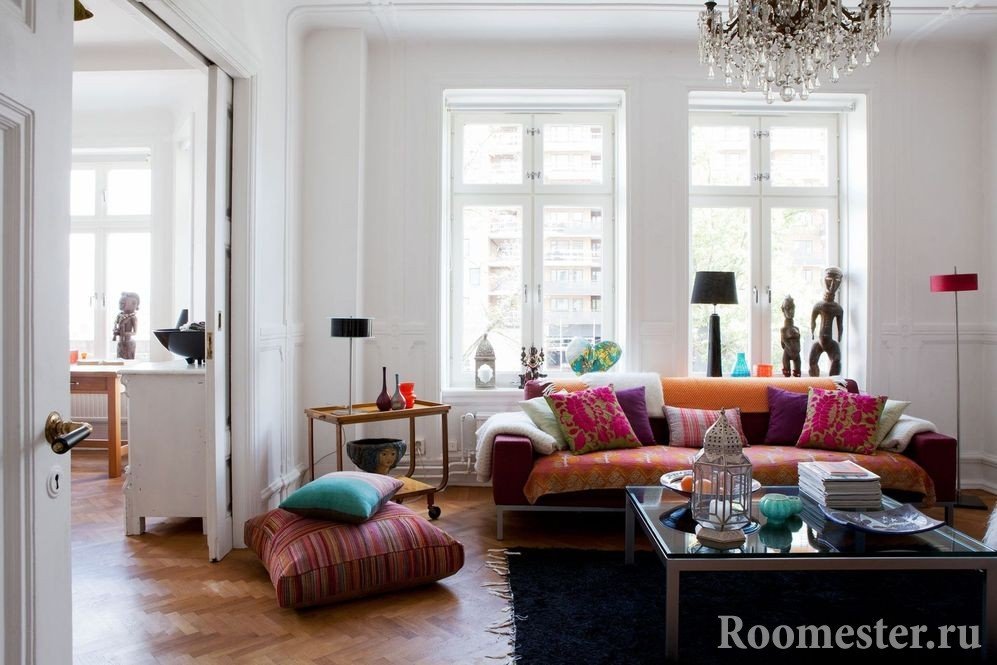 Pero, si no se desea que el espacio se decore de un solo estilo, el eclecticismo viene al rescate. Esta dirección es elegida con mayor frecuencia por personas sobresalientes, creativas, que aman un enfoque no estándar para resolver problemas. Aquí puede mezclar fácilmente la decoración original con cualquier mueble cómodo e inusual. Pero, para que la atmósfera de la sala de estar no se parezca a un almacén, es necesario tener en cuenta varios matices.