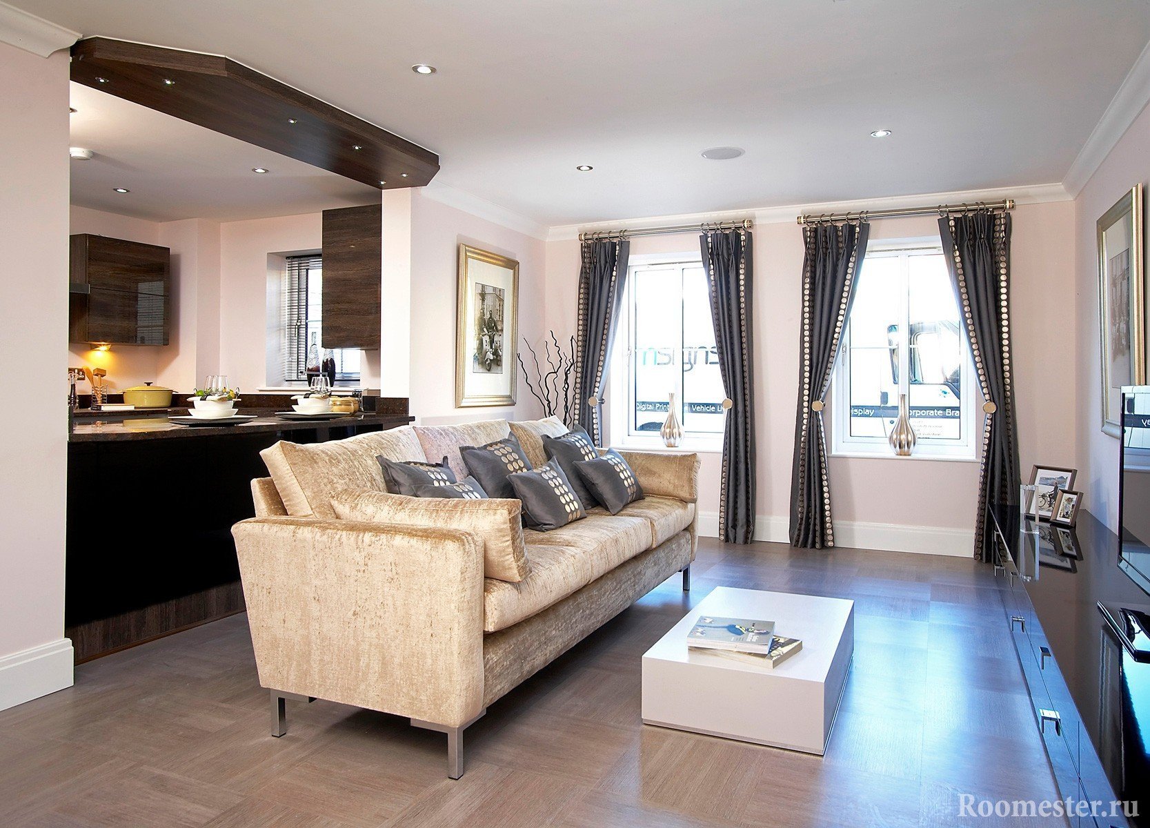 Desde el comedor. Zonas equivalentes. Su ubicación depende únicamente de las preferencias de sabor de los propietarios. Pero cada uno de ellos necesita suficiente espacio para el arreglo.