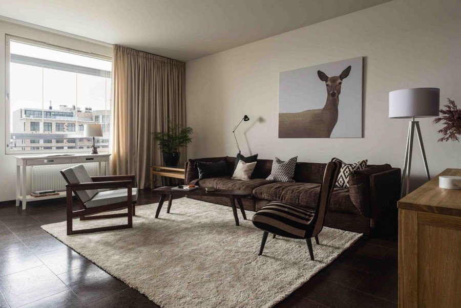 falta de pretensiones y el uso de una cantidad mínima de muebles (contribuye a la creación de un ambiente acogedor y moderno);
