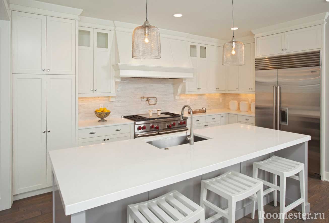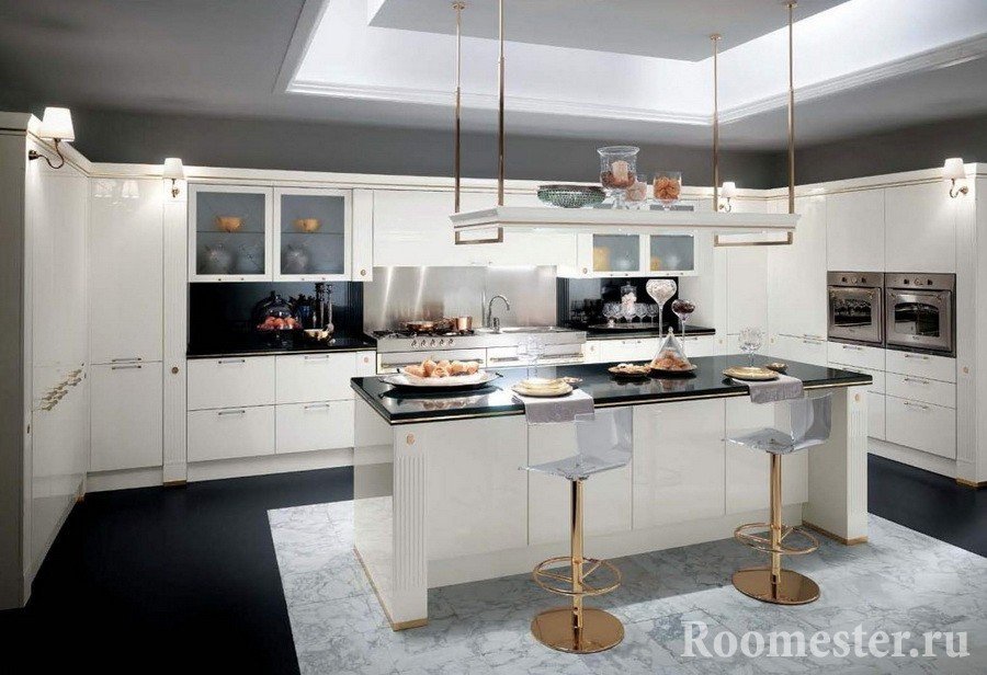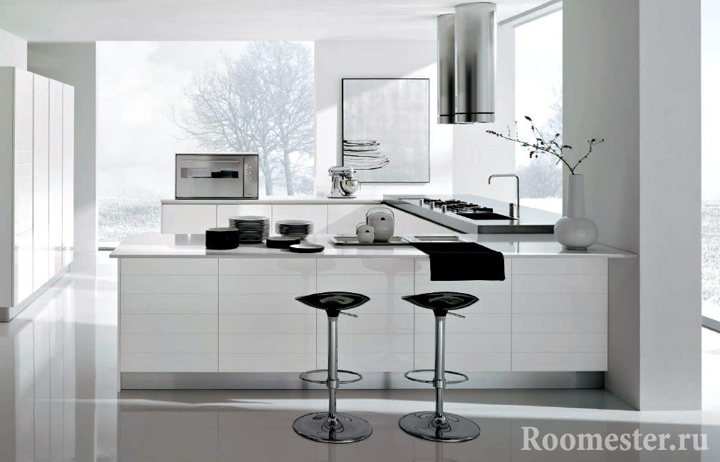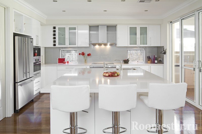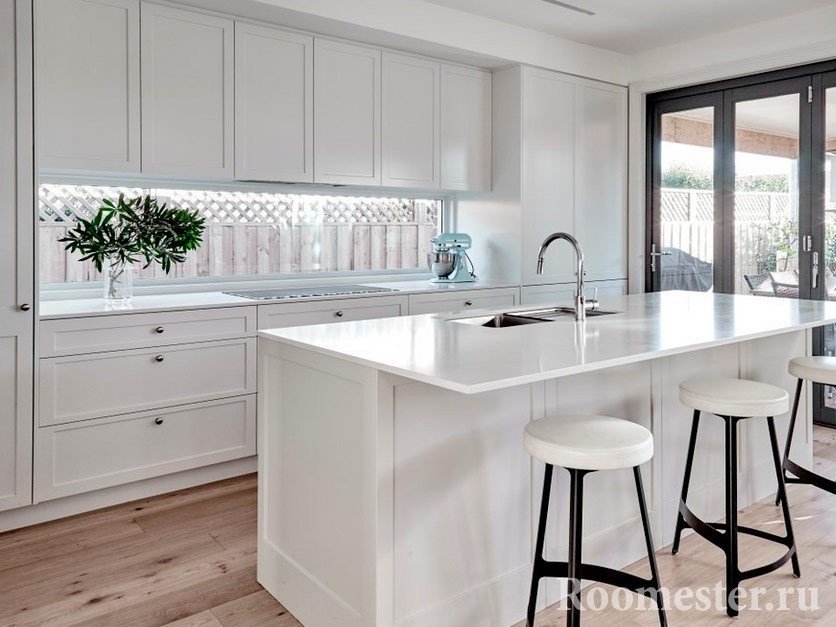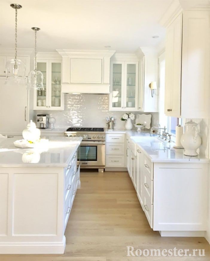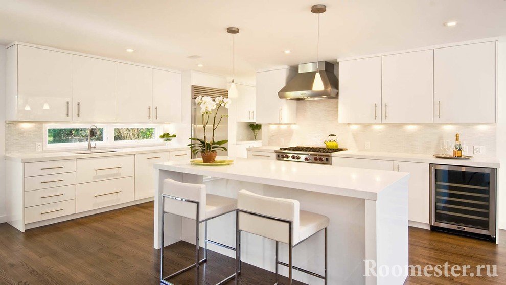Las cocinas blancas son la última tendencia entre las soluciones de diseño. A primera vista, parecen inusuales, poco prácticos y monótonos. Pero tal elección para diseñar el lugar más importante de la casa está llena de muchas ventajas prácticas, y los ejemplos fotográficos demuestran originalidad. Esta es una solución muy prometedora en términos de aumento de espacio y, al mismo tiempo, una habitación completa para la encarnación de sus ideas sobre la cocina perfecta. La cocina blanca encajará fácilmente en el interior de varios estilos, dando un aspecto perfecto con un mínimo esfuerzo.