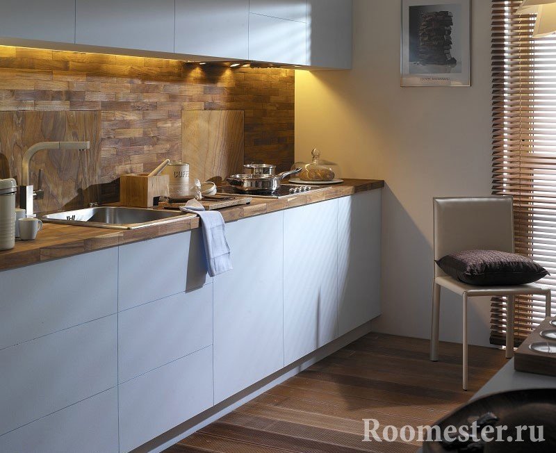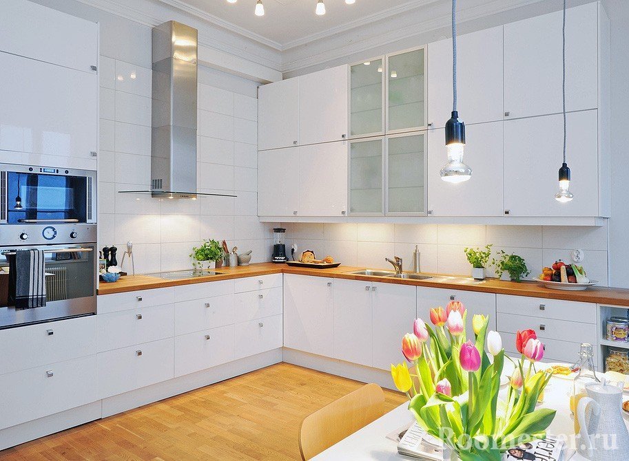 Los diseñadores intentan constantemente darle a los interiores de las cocinas blancas como la nieve un toque de originalidad. Tienen éxito, porque se están lanzando nuevos materiales de construcción, se facilitan los métodos de decoración. Solo la retroiluminación LED puede cambiar el aspecto de una cocina blanca más allá del reconocimiento.