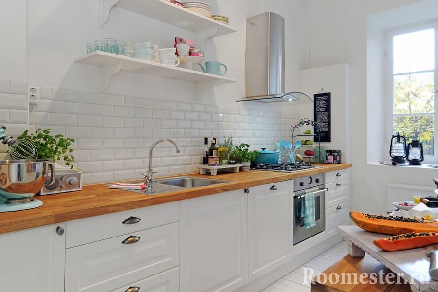 El color blanco es apropiado en casi cualquier estilo. Con su ayuda, puede crear una cocina moderna, moderna, tecnológica, de alta tecnología y ligeramente brutal, loft o tierna, provenzal, tranquila, minimalista, vintage, que se demuestra con una variedad de fotos: