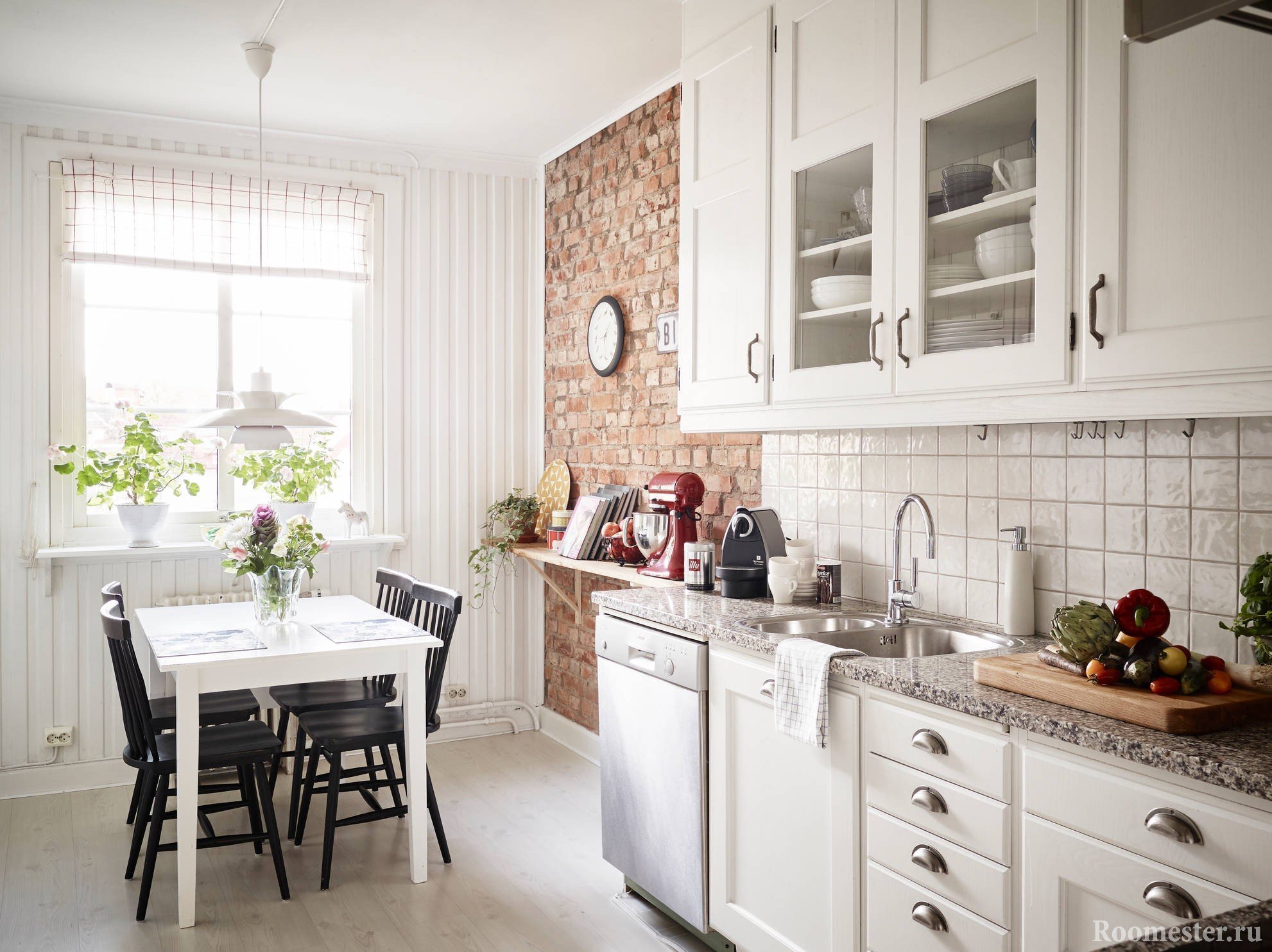 Además de un color variable, puede agregar colores sutiles únicos y textura de materiales naturales (imitaciones exitosas). Nada puede cambiar el humor de una cocina blanca como esta: un aspecto más elegante y sobrio de superficies de madera o un lujoso mármol que agrega "precio" al interior.El juego de texturas es más pronunciado con ladrillos, mosaicos volumétricos, mosaicos y fachadas brillantes.