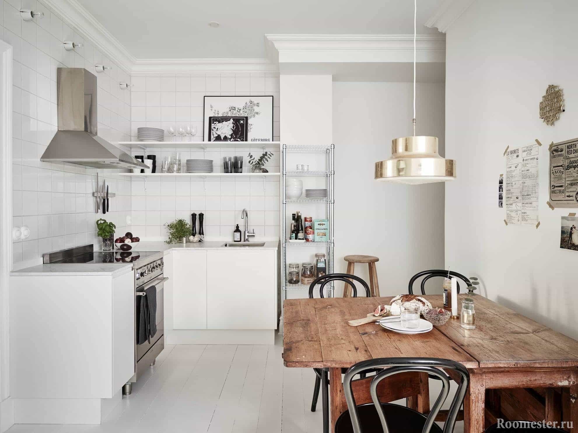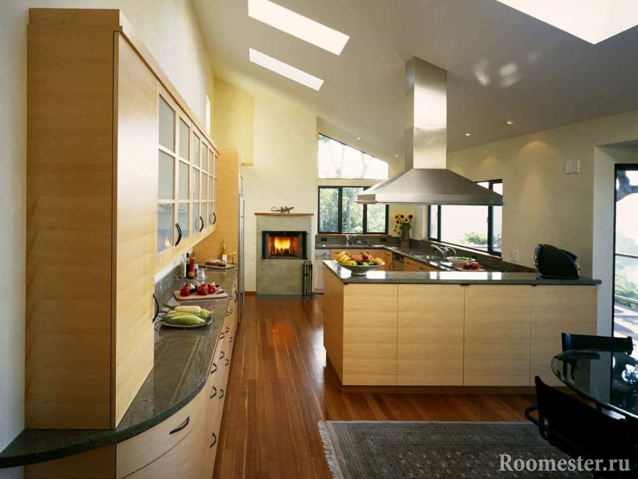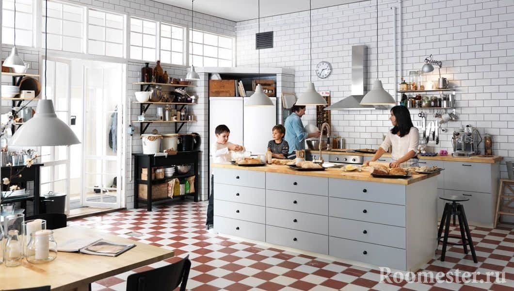 Para darle al diseño de una cocina grande un estilo clásico, vale la pena hacer un sesgo hacia el país.