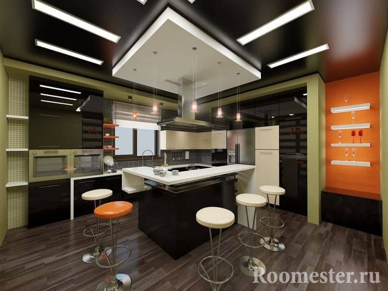 Cuide la disponibilidad de un número suficiente de asientos, porque en los últimos años ha sido el lugar central de la comunicación familiar y amigable. Ahora puede cocinar allí, recalentar alimentos, simplemente tomar té con amigos o comunicarse exclusivamente.