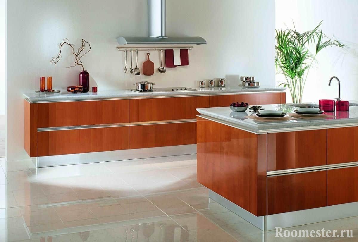 Si tiene la intención de usar objetos metálicos, recuerde que son al menos duraderos, pero tienen un alto riesgo de ser rayados. El uso de un laminado debilitará el golpe en la billetera y no dará una sensación de material natural. La piedra natural dará una atmósfera de confiabilidad, alta estética, pero habrá rastros desagradables de varios líquidos en ella. Cuando se usa piedra artificial, el riesgo de daño se reduce, y si hay algún defecto, se pueden eliminar fácilmente.