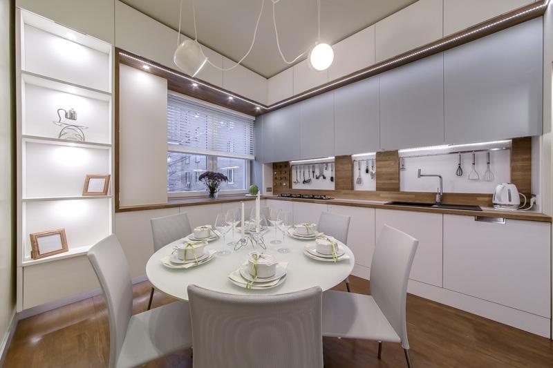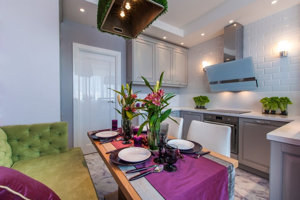 ¿Hay una cocina al lado del balcón? Gran bono! Los locales se pueden combinar, aumentando así el área de la cocina. En el área adjunta hay un grupo de comedor, módulos adicionales, un sofá o una mesa para una computadora. Al mover las flores a esta zona, puede crear un invernadero improvisado. La condición clave es tomar una decisión sobre la demolición de los bloques de ventanas, puertas y alféizares de ventanas antes de comenzar las reparaciones. Además, para realizar estos trabajos es necesario ordenar un proyecto y obtener permiso.