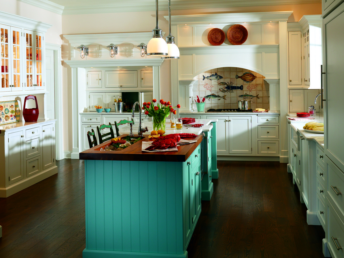 En la cocina, es aconsejable usar tonos claros y colores cálidos. Esta sala a menudo se combina con un área de comedor, lo que significa que la atmósfera debe estimular el apetito. Los psicólogos han demostrado durante mucho tiempo que rodeado de tonos azules, verdes o morados, se pierde el deseo de comer. En cocinas pequeñas, una paleta de luz también ayudará a expandir visualmente el espacio. El tono predominante se elige entre tonos de blanco, colores pastel y variaciones de marrón. Melocotón, rosa, vino, mostaza, terracota, coral, amarillo brillarán con sus nuevos colores. Por supuesto, está permitido usar tonos claros de la gama fría, pero en cantidades estrictamente dosificadas: lila, azul, turquesa, lima, oliva.