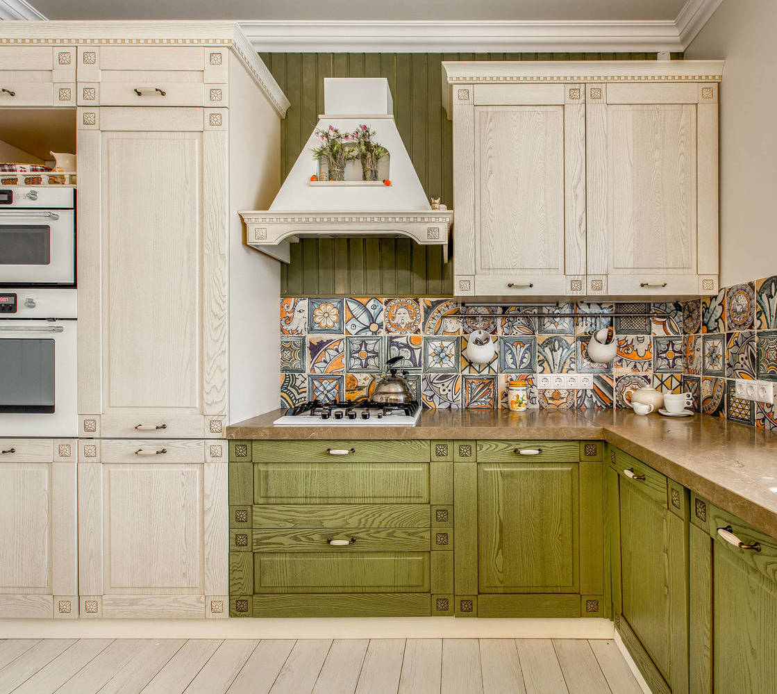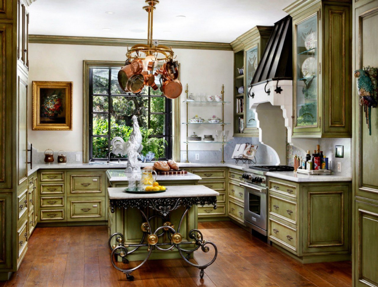 La mayoría de los estilos fomentan el uso de muebles antiguos o anticuados. Por supuesto, no decore la cocina con antigüedades caras. Cualquier gabinete o mesa innecesarios siempre se puede ennoblecer. Para hacer esto, la capa superior de pintura agrietada se raspa y la superficie se pinta nuevamente. Luego, como complemento, puede aplicar dibujos originales a la superficie, decorarlo con cáscara de huevo, tela, accesorios. Por supuesto, para el estilo clásico, eligen nuevos muebles elegantes, pero la Provenza y el país menos exigentes llevarán fácilmente el buffet de la abuela al interior. Si la cocina está planificada para cocinar y enlatar de temporada desde la mañana hasta la noche, entonces esta decisión tiene sentido práctico.De hecho, bajo la influencia constante de los cambios de vapor y temperatura, cualquier material se volverá rápidamente inutilizable, y no es una pena tirar un viejo armario o mesa, a menos que, por supuesto, sea una "reliquia familiar".