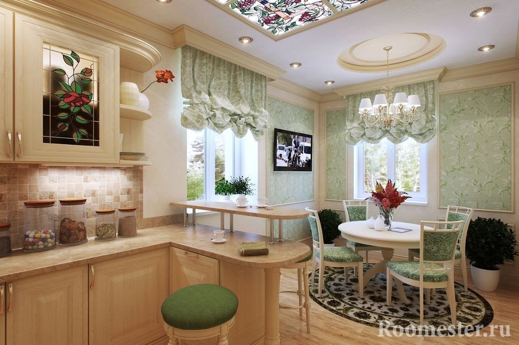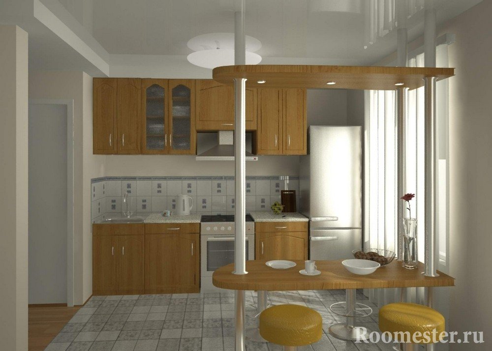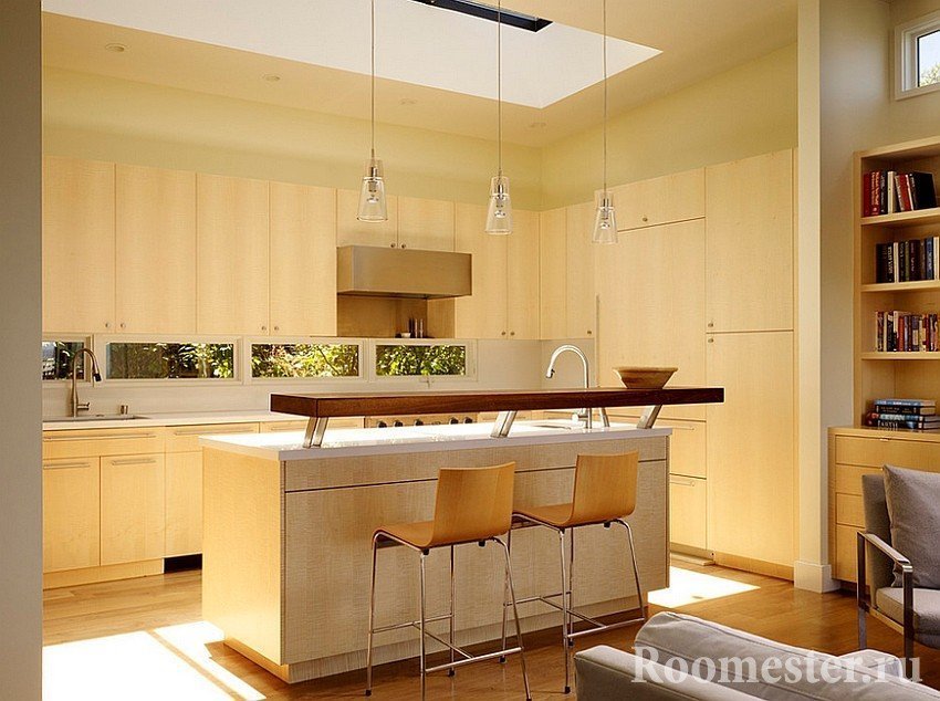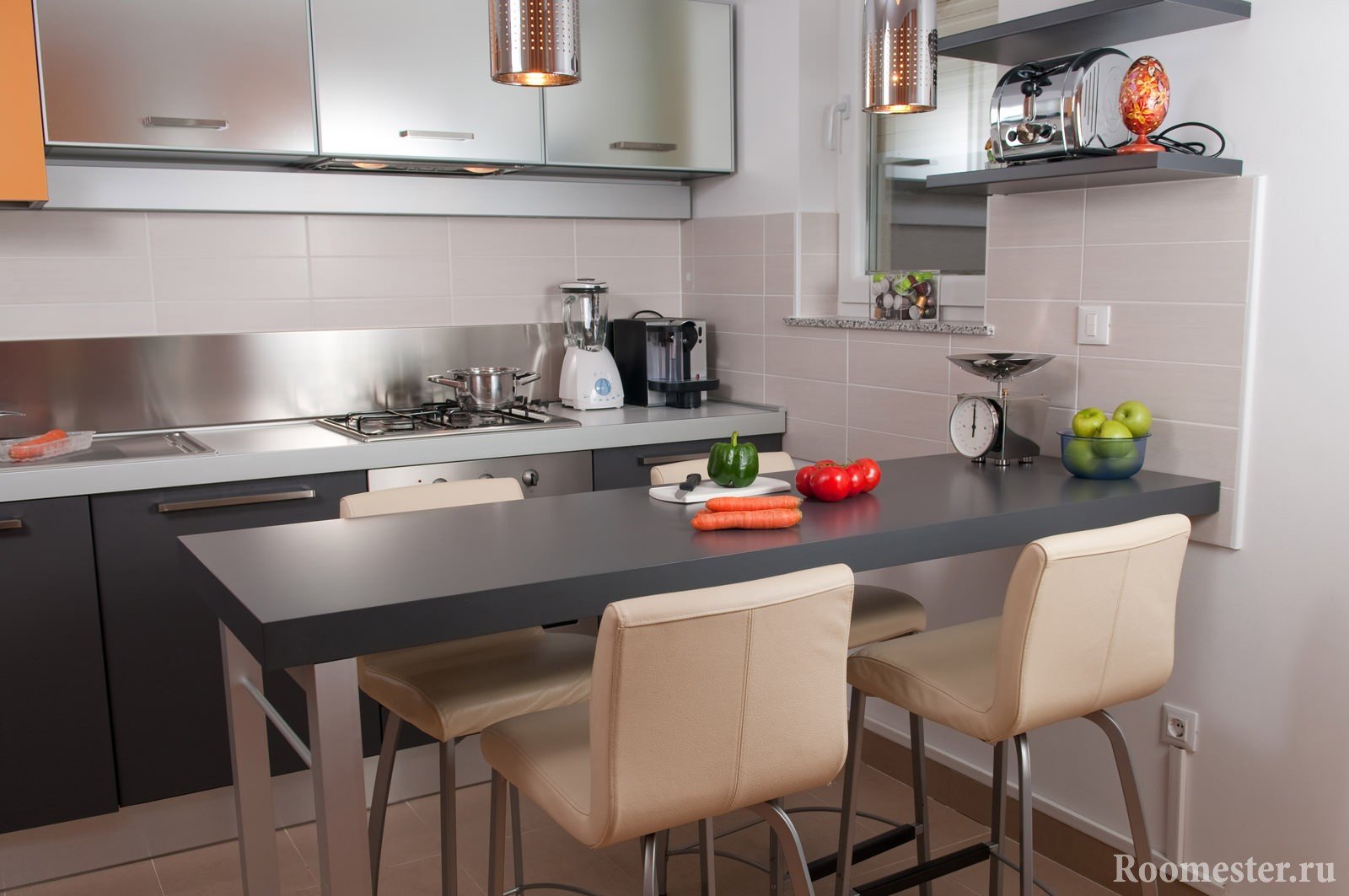 Consejo! Este diseño es muy conveniente como mesa de comedor. Use una barra de bar de tamaño cómodo como área de comida en una cocina de tamaño pequeño para una familia pequeña. Esto hará que el espacio de la cocina sea más ergonómico.
