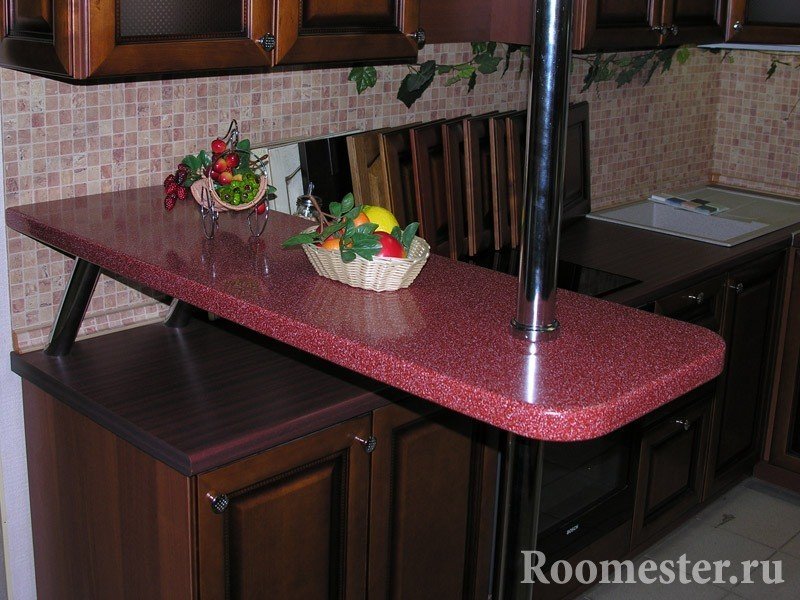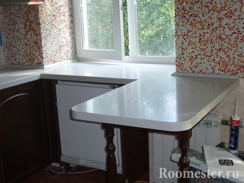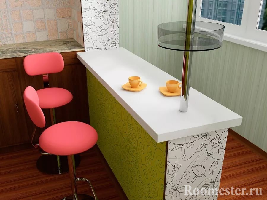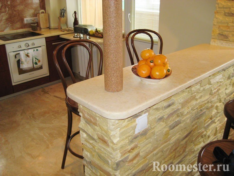 La barra de bar se instala de acuerdo con el nivel de encimera de la unidad de cocina. Este método le permite agregar significativamente una superficie de trabajo para cocinar y comer.
