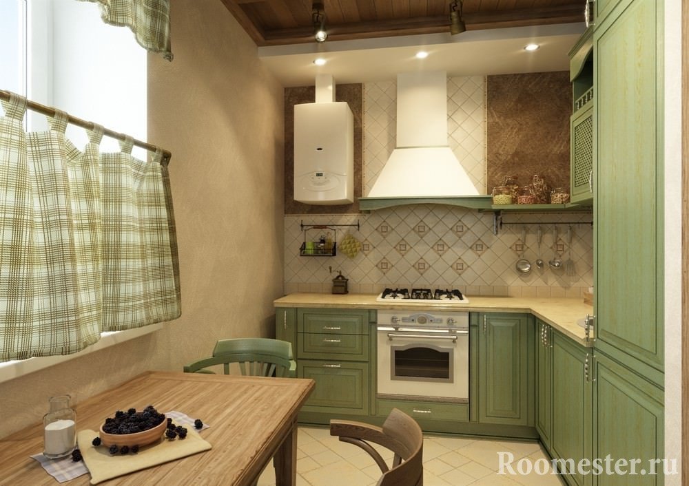 Debe ejercer moderación en la decoración para no sobrecargar la habitación con detalles. Después de ver su rendimiento favorito de la foto, debe tener en cuenta las necesidades individuales y la carga que se asigna a la cocina a diario. No todos los proyectos están totalmente adaptados: una zona culinaria o sumidero demasiado pequeños pueden estropear el estado de ánimo más que la presencia de un géiser, que puede enmascararse fácilmente. Y luego esta fuente de agua caliente ininterrumpida dejará de ser un malentendido molesto en la cocina de Jruschov.