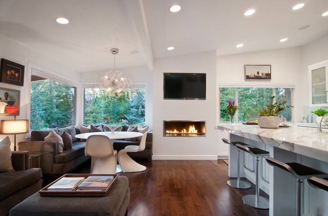 La zonificación "competente" de los locales, realizada de acuerdo con las reglas, creará una sensación de comodidad, accesibilidad y conveniencia de la disposición de muebles y electrodomésticos empotrados. Los límites entre las zonas pueden ser tanto visuales (solo arreglando muebles, color o iluminación) como físicos (particiones, chimeneas, acuarios, arcos, columnas, etc.). Existen las siguientes formas de combinar dos habitaciones: