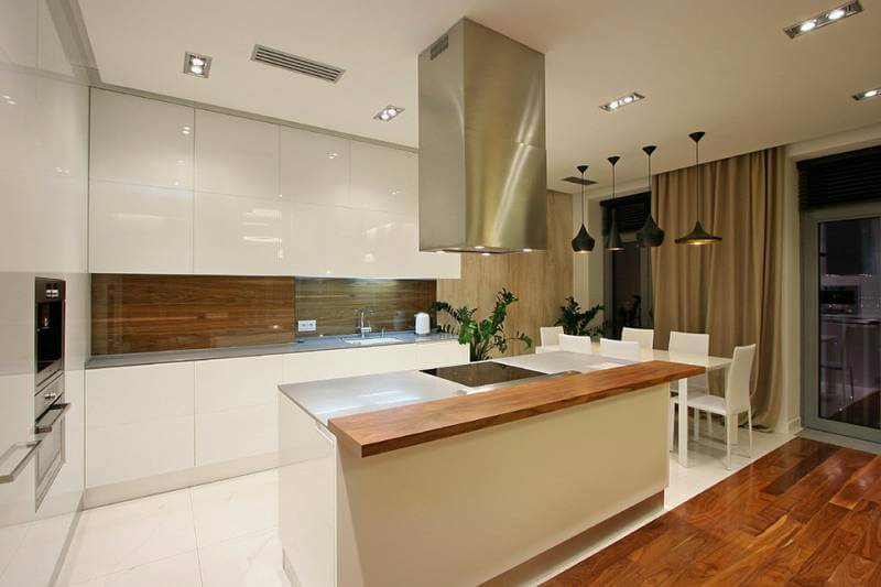 Con la ayuda de modernos electrodomésticos y electrodomésticos de cocina, es posible negar la penetración de olores y sonidos de los electrodomésticos, pero la limpieza oportuna estética del área de la cocina y las superficies de trabajo permanece con la persona.Además de su propio deseo, finanzas, la elección del diseño y el interior, será necesario pasar por una serie de aprobaciones para obtener documentación sobre la remodelación de los locales (especialmente para apartamentos en edificios de varios pisos). Los SNiP actuales y las prohibiciones sobre la ubicación de zonas "húmedas" (suministro de agua, lavado, fregadero) sobre los vecinos "secos" no se han cancelado, así como la transferencia de equipos de gas (diseño de tipo de isla, estufa en el medio de la cocina). Por lo tanto, para que no haya problemas con los vecinos de abajo y arriba y preguntas durante la venta posterior de un apartamento, es mejor documentar oficialmente estas remodelaciones.
