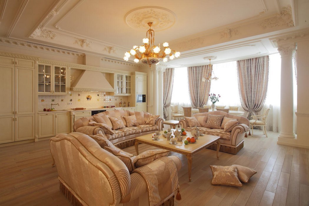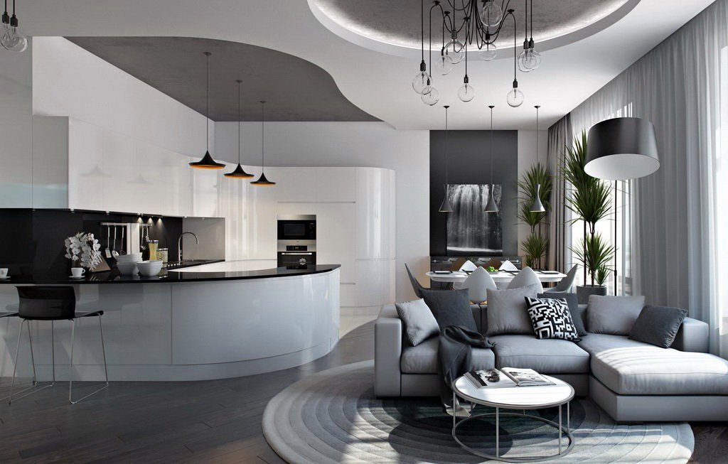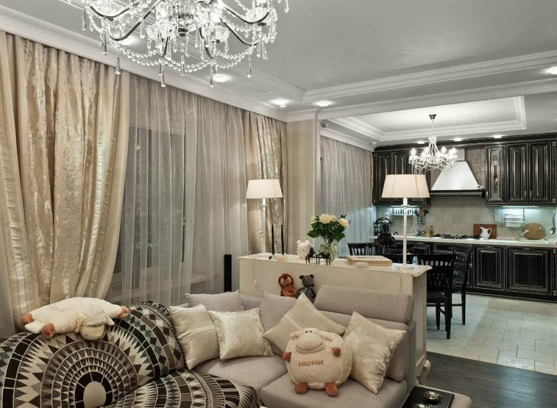 Una sala de estar en la que solo hay muros de carga se llama estudio. No hay paredes internas (con la excepción del baño), se divide condicionalmente en una sala de estar y un comedor con cocina incorporada. Tal diseño apareció en los años 20 del siglo pasado. La creación misma del estudio se atribuye al arquitecto alemán Ludwig Mies van der Rohe, aunque, para ser justos, vale la pena señalar que en sus proyectos de apartamentos con un diseño libre de esos años, solo la cocina con el baño estaba en el "núcleo fijo" del apartamento. El diseño de una cocina-estudio, una cocina combinada con una sala de estar, un comedor, un corredor o una logia penetra la misma idea de espacio abierto en nuestro país.Inicialmente, la cocina-estudio fue optimizando el área utilizable solo para una pequeña cocina en un apartamento estándar, pero con el tiempo se hizo popular en las viviendas, lo que hizo posible no sentirse "abarrotado".