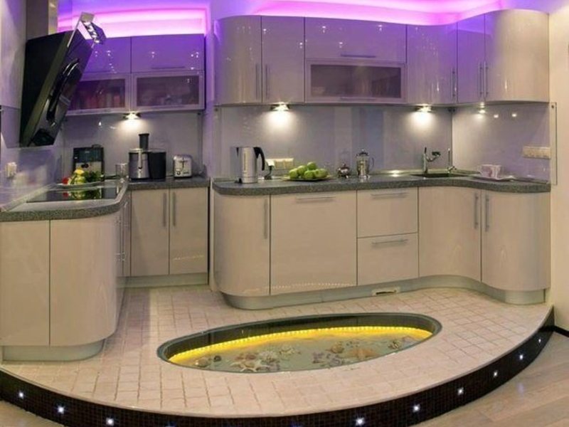 Consejos utiles. Al experimentar con varias fuentes de luz de diferentes intensidades y su ubicación desde el nivel del piso, puede elegir la "luz" necesaria para el trabajo y la iluminación "acogedora", adecuada para cualquier estado de ánimo. Además, el juego de luces puede aumentar visualmente el pequeño espacio de la cocina, que a menudo es muy limitado, por ejemplo, en apartamentos de casas de paneles.