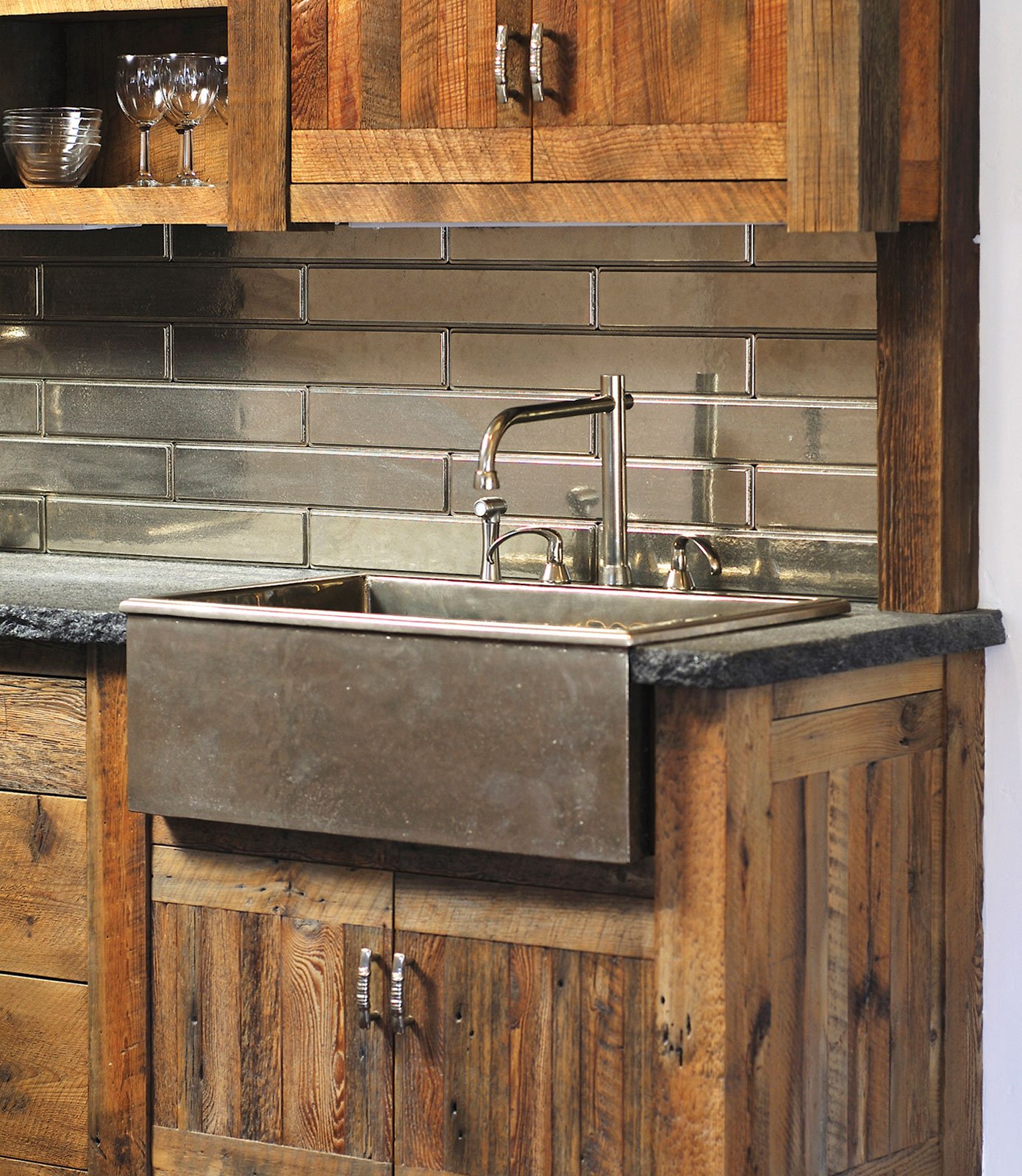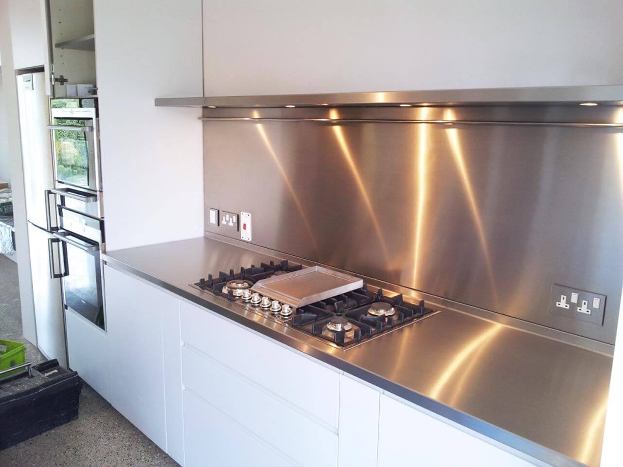 Un delantal hecho de metal se ha convertido en una tendencia de moda en los últimos años. Los diseñadores utilizan voluntariamente esta solución para diseñar cocinas tipo loft y de alta tecnología. Muchos creen erróneamente que el acero se ve demasiado "frío". Su "temperatura" se puede aumentar debido a los objetos circundantes y la decoración. Los delantales de metal se convierten en un elemento acogedor del interior si se combinan con madera, yeso texturizado, gres porcelánico, piedra cálida o papel tapiz de vinilo de color pastel. Otra combinación orgánica son las superficies de acero y vidrio. Los delantales de metal pueden ser mate y brillantes. La primera opción es perfecta para cocinas pequeñas.Puede hacer su propio delantal de acero inoxidable cortando toda la hoja al tamaño deseado o ensamblándolo a partir de piezas utilizando la técnica del mosaico. Con los azulejos de espejo comparten un defecto común: la suciedad.