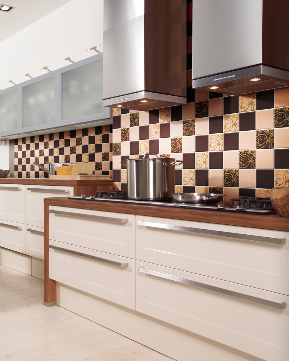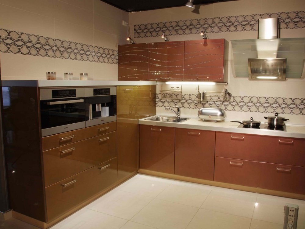 En cuanto al diseño del azulejo, el azulejo cuadrado liso ha estado compitiendo durante mucho tiempo con cerámicas de configuraciones y colores inusuales. En los interiores modernos, se encuentran cada vez más módulos de formas rectangulares debajo de un ladrillo (jabalí), "panales" hexagonales e incluso cuadrados y triángulos con bordes ondulados (una excelente adición para el art nouveau). Este último se puede encontrar en las colecciones de materiales de acabado del autor. La gama de colores también agrada a los clientes con su variedad. Los fabricantes de baldosas cerámicas también han adoptado el moderno efecto ombre. Elementos con gradación de color, donde los tonos se seleccionan de acuerdo con el principio de analogía de oscuro a claro, una nota extraordinaria se derramará en el interior de la cocina.Adornos florales, patrones ornamentales, geometría compleja, paisajes enteros y panoramas: el rango de variaciones en el diseño de la portada es realmente enorme. La calidad del producto se puede verificar directamente en la tienda. Es necesario tomar selectivamente dos mosaicos para la comparación. Primero, combinando ambos fragmentos, debe verificar qué tan suaves son las caras laterales. El espacio entre ellos debe ser inferior a 0,05 cm. La loseta que se coloca utilizando el método sin costuras no debe tener una brecha entre las losetas. Luego, verifique la rugosidad, astillas, grietas, "manchas de color", lugares con manchas irregulares en la superficie frontal. Todos estos defectos se consideran defectuosos. Tampoco debería haber virutas en el reverso, pero el relieve proporciona una buena adhesión entre la loseta y la superficie, por lo tanto, se requiere “rugosidad” aquí.