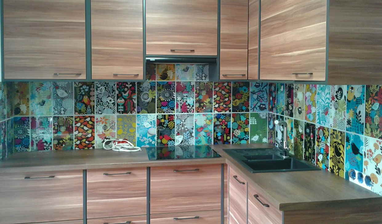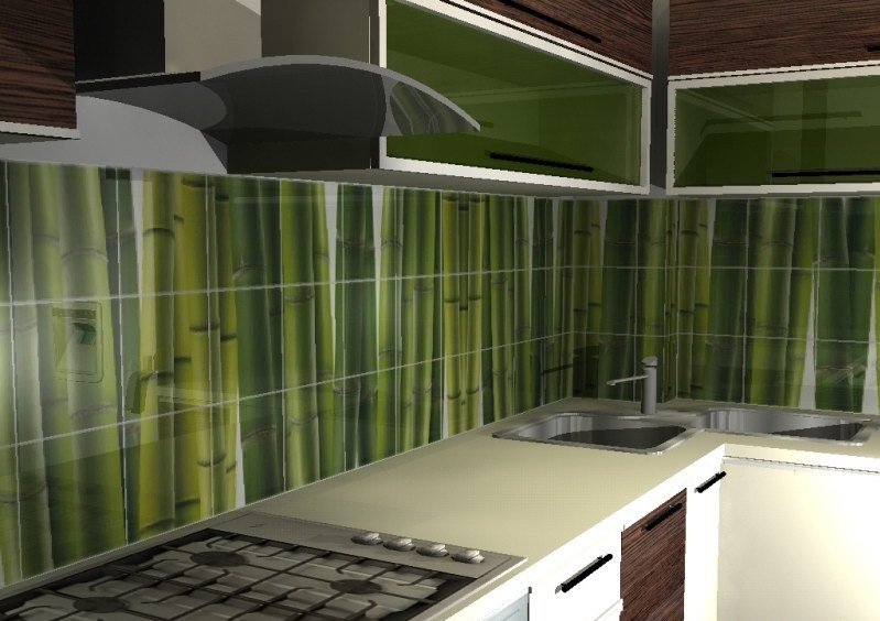 Hay otro tipo de mosaico que no se puede clasificar. La forma en que se coloca un mosaico o la imagen en su superficie crea un efecto tridimensional. La opción más primitiva es la colocación del "rombo", que se usaba en la antigüedad al enfrentar pistas y almohadillas. Resultó un relieve, patrón geométrico convexo. Algunos delantales están colocados con baldosas: baldosas de cerámica hechas de arcilla cocida con una superficie brillante. Tienen un grosor impresionante, por lo que no son adecuados para todos los interiores. Especialmente para delantales de cocina, puede elegir un conjunto de azulejos que se ensamblan en una sola imagen. Una foto (paisaje, panorama, naturaleza muerta, composición de flores) se aplica a su superficie mediante impresión fotográfica, que se fija en la parte superior con una capa protectora.