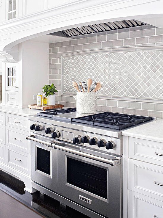 Tipo de estufa.Como estándar para las estufas de gas, los delantales se hacen un poco más altos debido a la mayor distancia entre la campana y la placa.